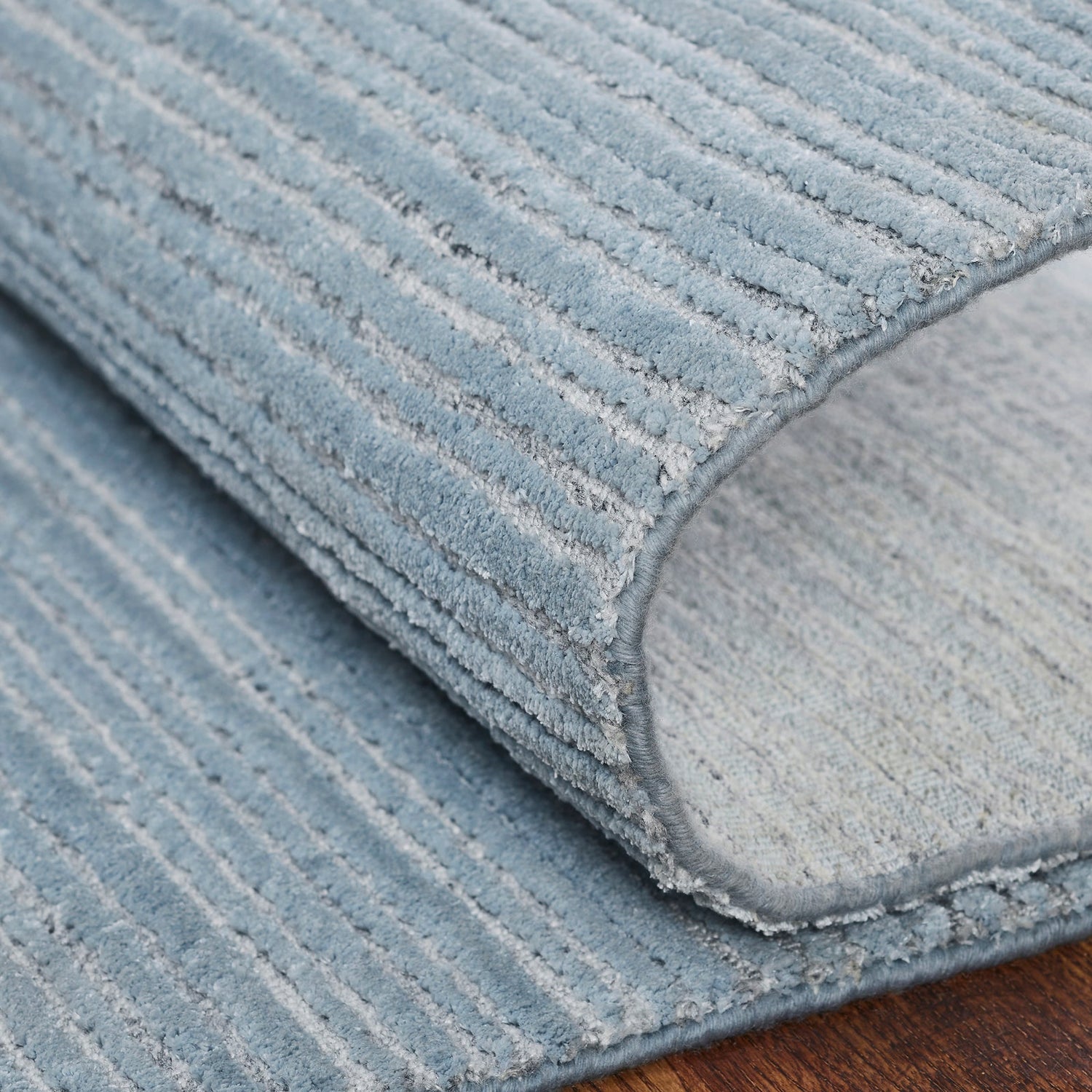 Simplicity tells an elegant story. Hand knotted of wool and bamboo viscose...