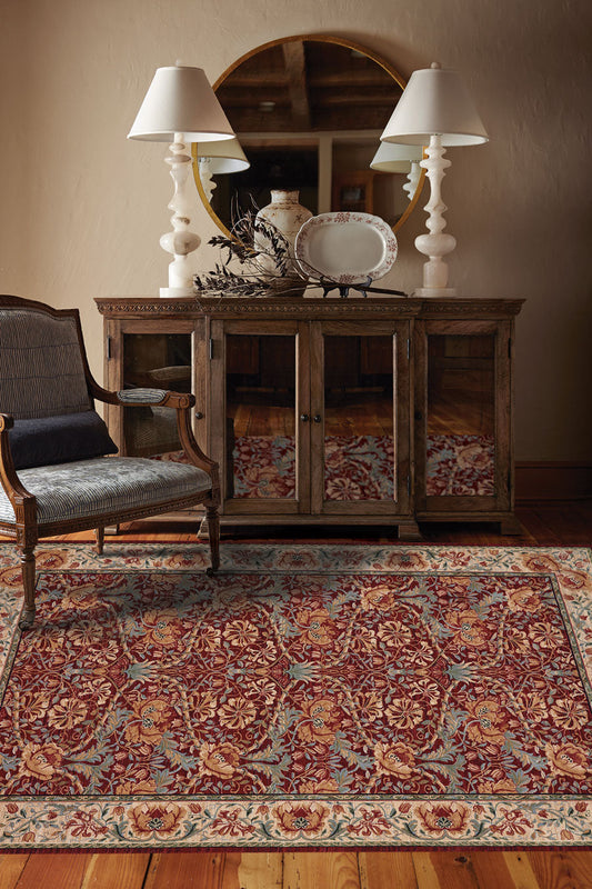 Homage is paid to the traditional rug designs sourced for our earliest rug imports decades ago. Timeless artistry and beauty are captured in this budget-friendly, machine loomed collection made of 100% quality New Zealand wool.