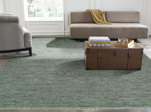 Clean lined and simply charming! Each single-color, reversible rug in the Skagit Bay Collection is handcrafted in a flat, soumak, double-sided weave using 100% premium wool that provides attractive abrash heathered effects due to the lighter/darker striations in the yarn.