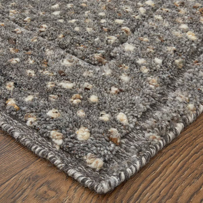 This textured Moroccan-style rugis hand knotted in India of wool. Designed with a subtle contemporary geometric pattern in grey and white, the area rug is ideal for many areas of your home.