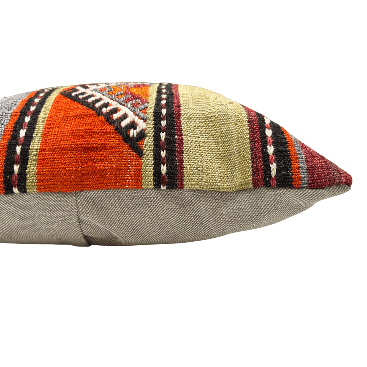 Turkish kilim rug pillow - wool face; cotton back; down/feather fill