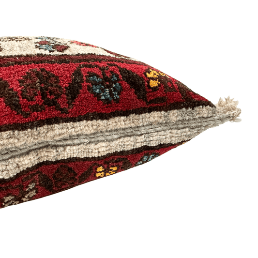 Afghan Made Veg.Dye Pillow gray/dk.red 11"x16"