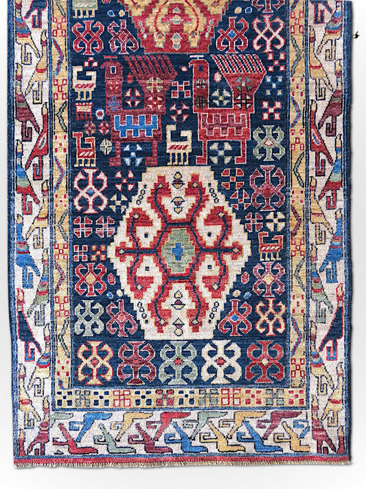 Super Kazak (2'11"x4'00") denim blue/ivory