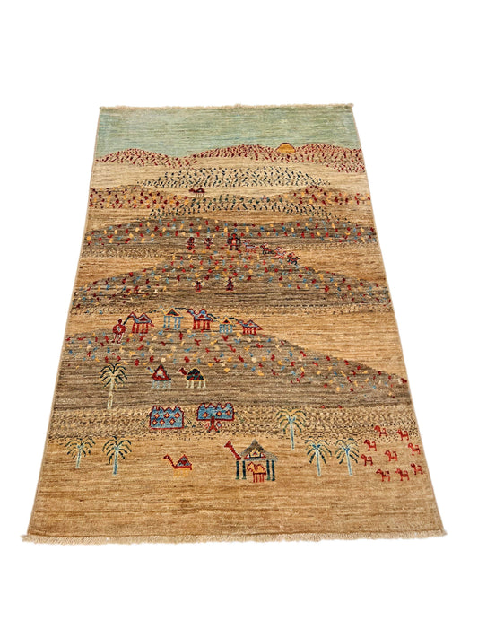 Contemporary wool/bamboo (8'00"x10'00") gold/ivory/teal