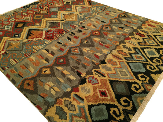 Scenic Afghan Gabbeh (8'02"x9'06") greens/blues