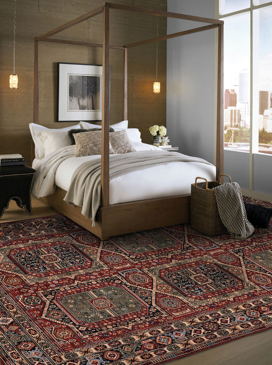 Qashqai Design New Zealand Wool red/navy 5'03"x7'10"