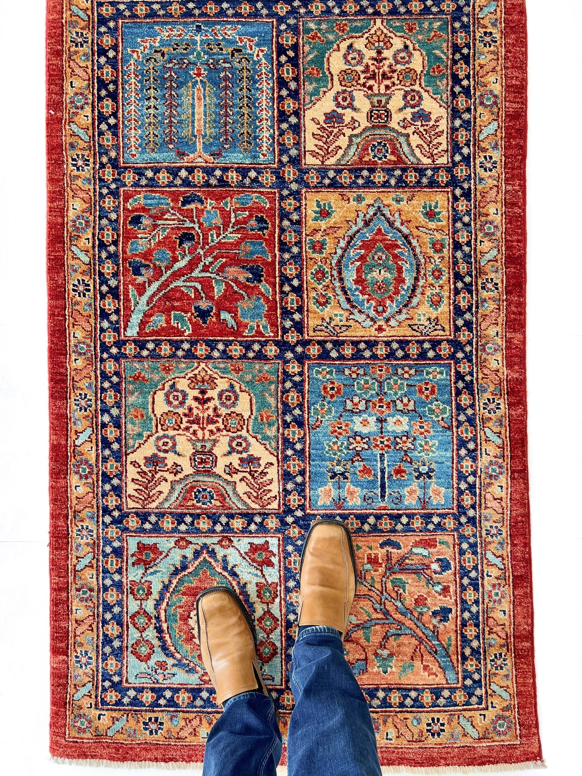 Bakhtiari panel design – hand knotted of hand-spun, vegetable-dyed Ghazni wool (Afghanistan)