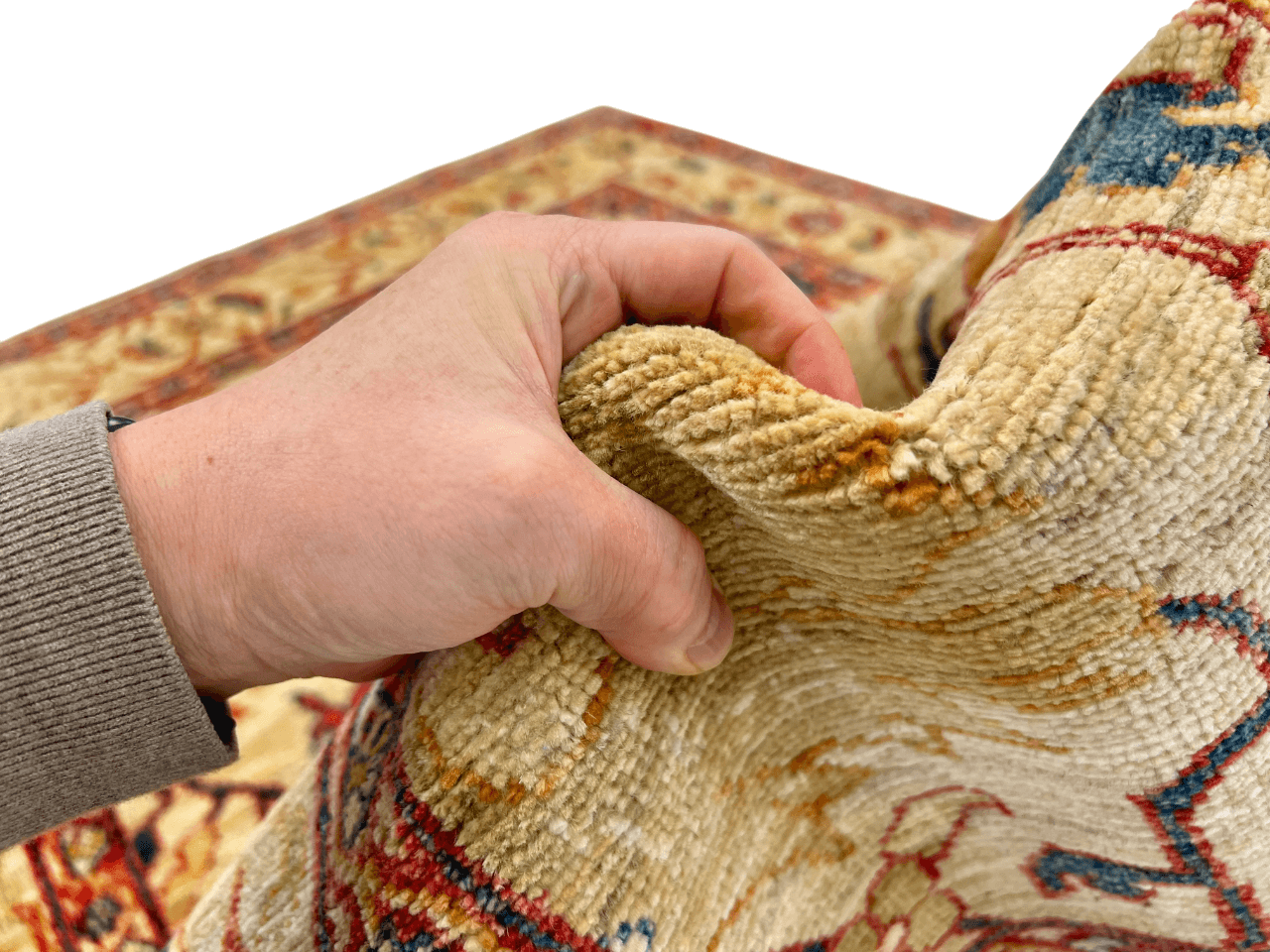 Expertly crafted from hand-knotted Ghazni wool, the Afghan Mahal (3'11"x6'10") showcases traditional Afghan weaving techniques with natural vegetable dyes. This rug offers superior durability and a rich, authentic texture that enhances any environment with refined cultural artistry and lasting quality.