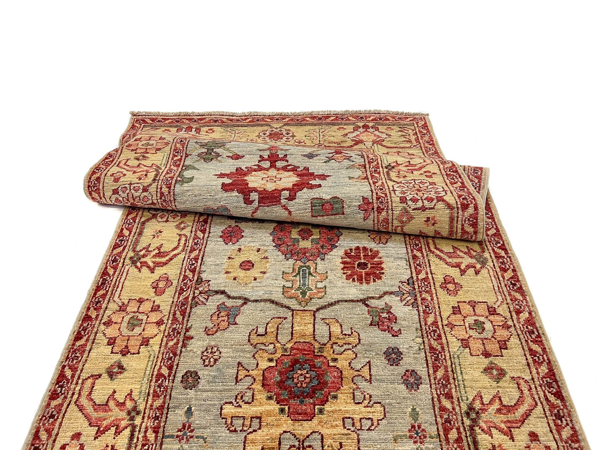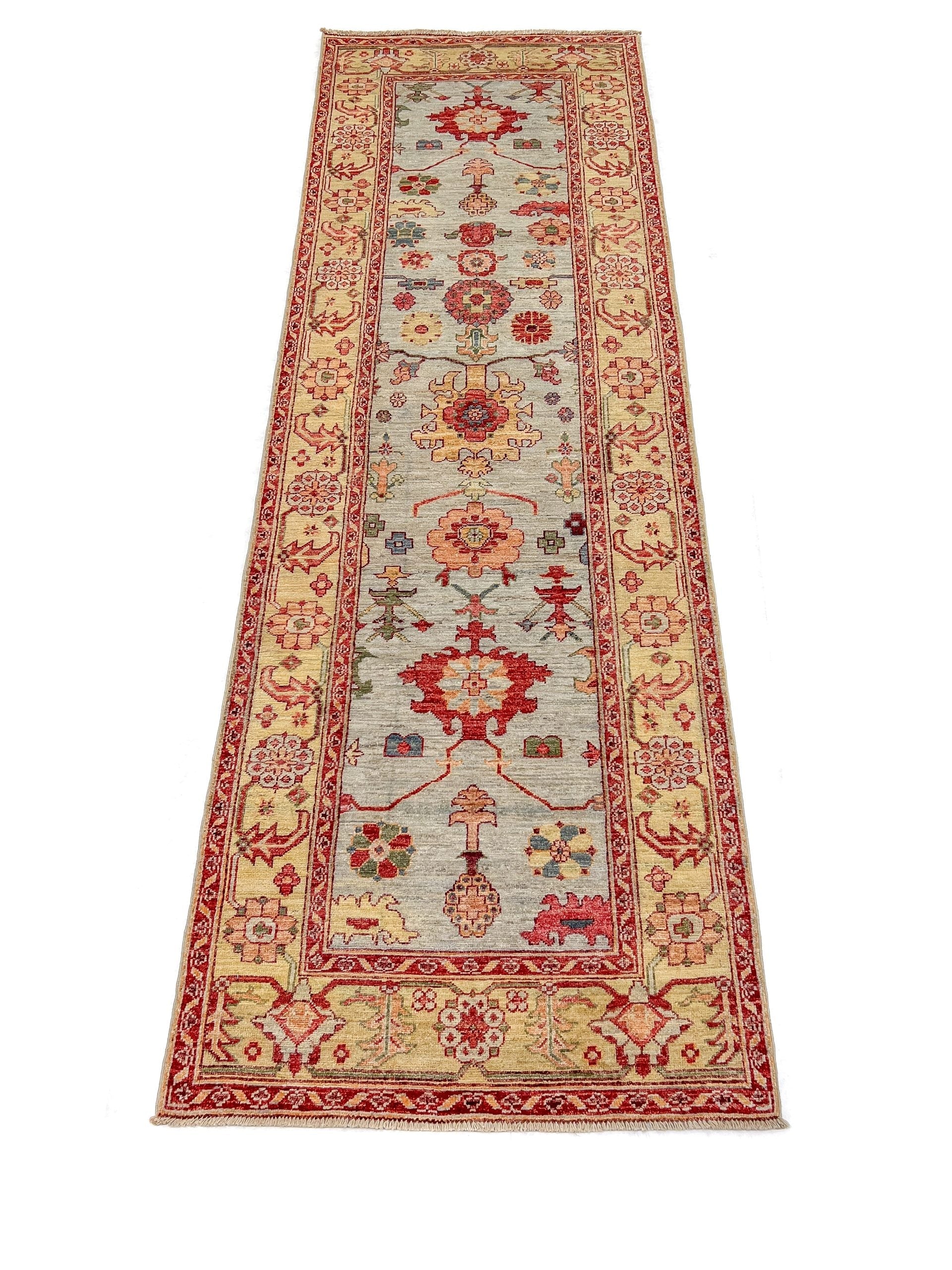 A new classic – Afghan interpretation of an antique Turkish Oushak design – hand-knotted of hand-spun, vegetable-dyed Ghazni wool – antique-washed and exported from Afghanistan