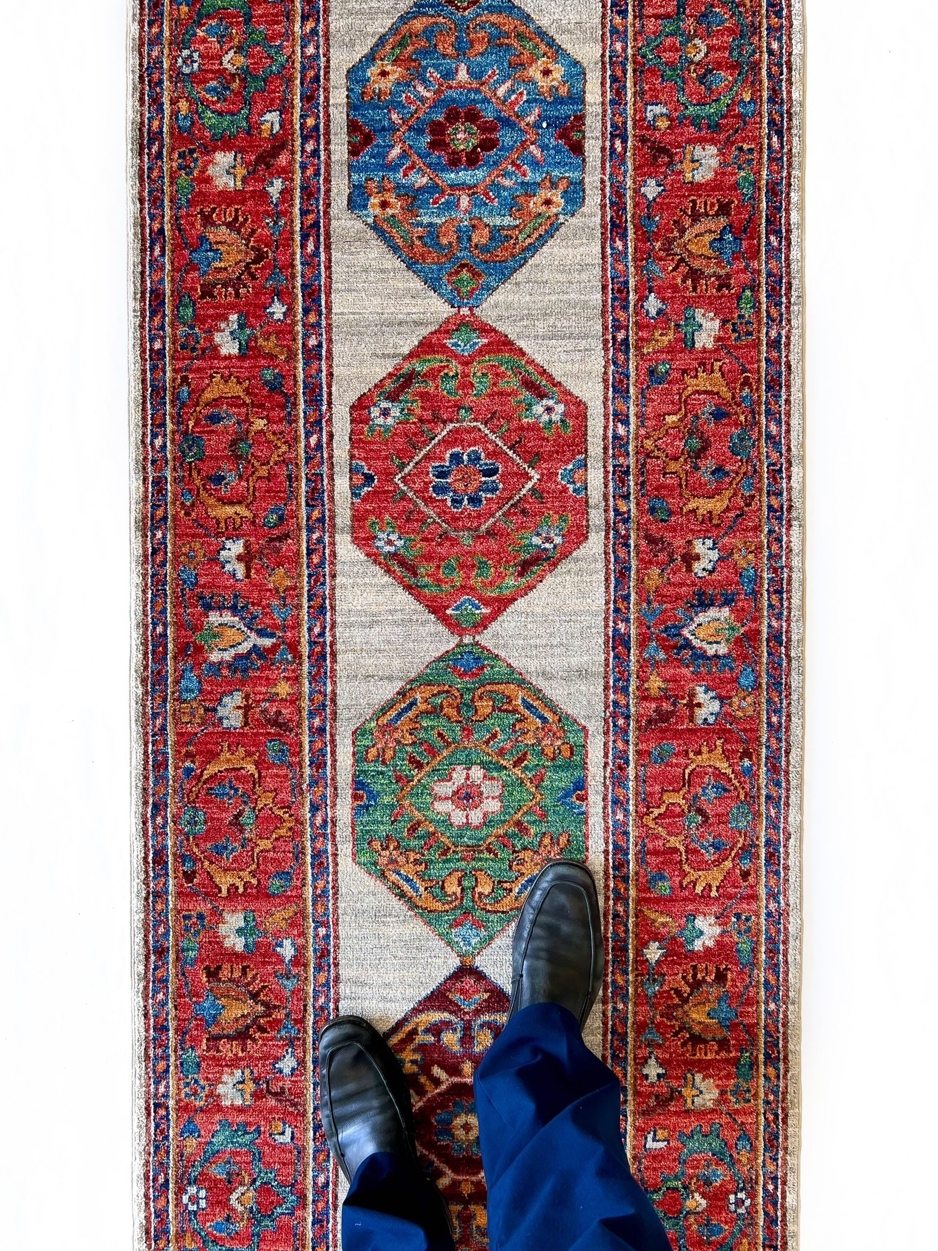 Aryana – Afghan-made runner – hand-knotted of hand-spun, vegetable-dyed Ghazni wool – exported from Pakistan