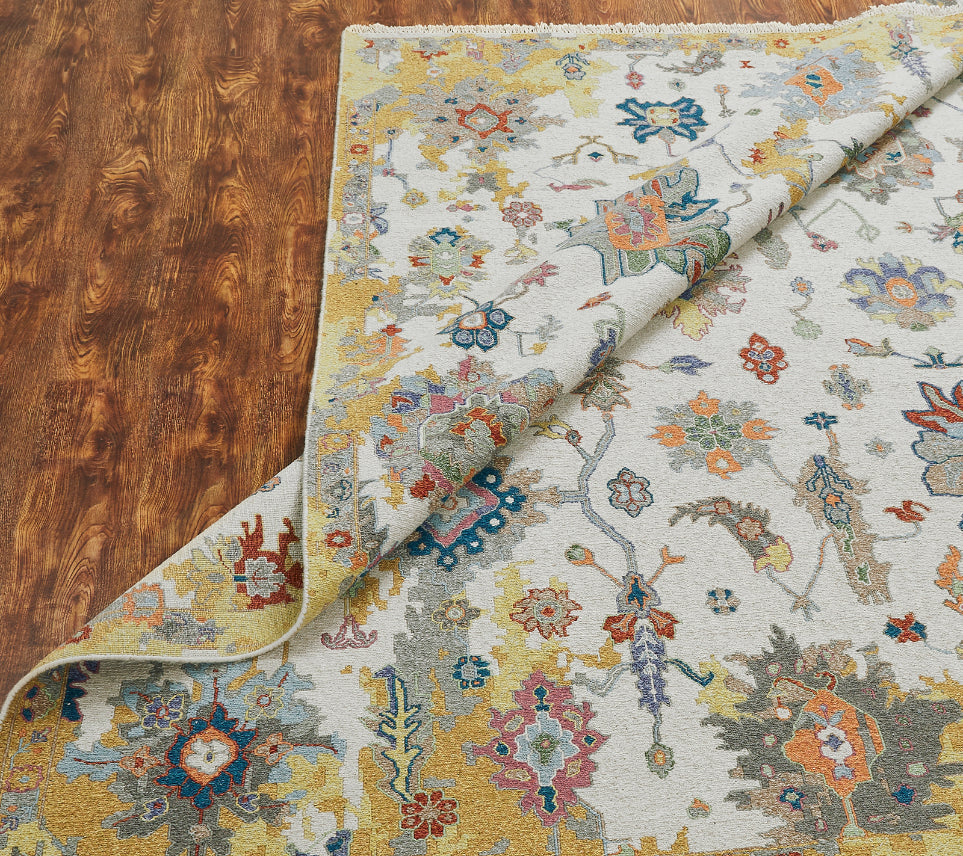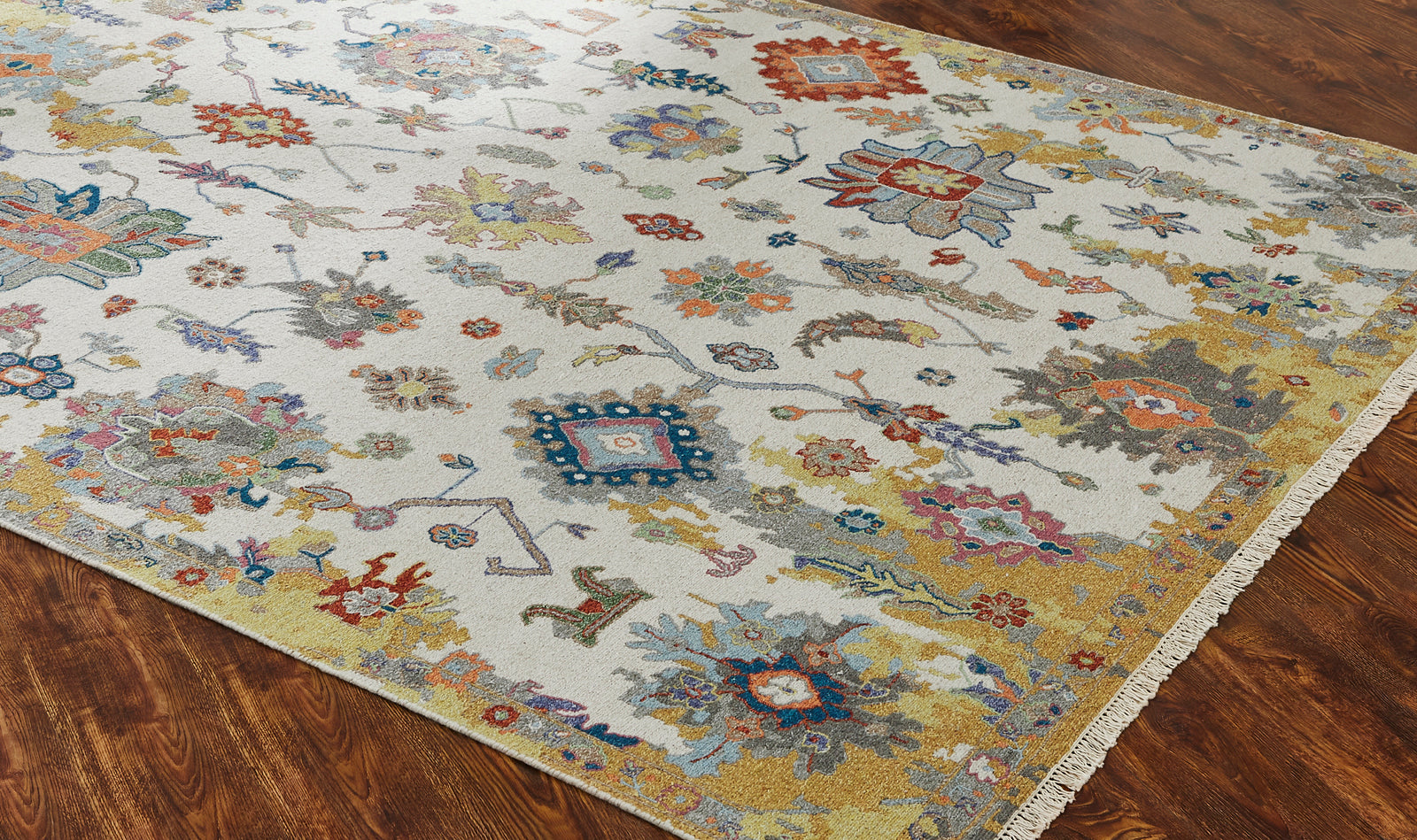 Charming double-sided Oushak-inspired Soumak designs rendered in fresh upbeat colorways. Hand knotted in a Soumak weave using 100% premium wool yarns on a cotton foundation, each of these versatile reversible flatweave rugs features a unique herringbone texture which is a unique characteristic of the classic Soumak weave.