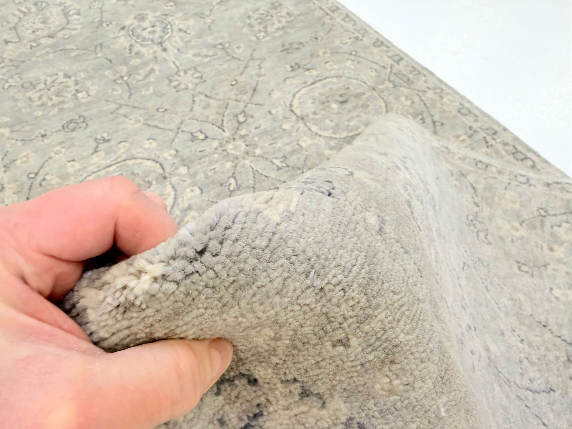 Elevate your hallways and entryways with this stunning 10' runner featuring a timeless transitional design. Hand-knotted from premium wool in India, this piece showcases soft, sophisticated light gray tones that seamlessly complement any décor style. The meticulous craftsmanship ensures durability and lasting beauty, while the gentle color palette creates a calming, refined atmosphere throughout your home. Perfect for adding warmth and elegance to narrow spaces.