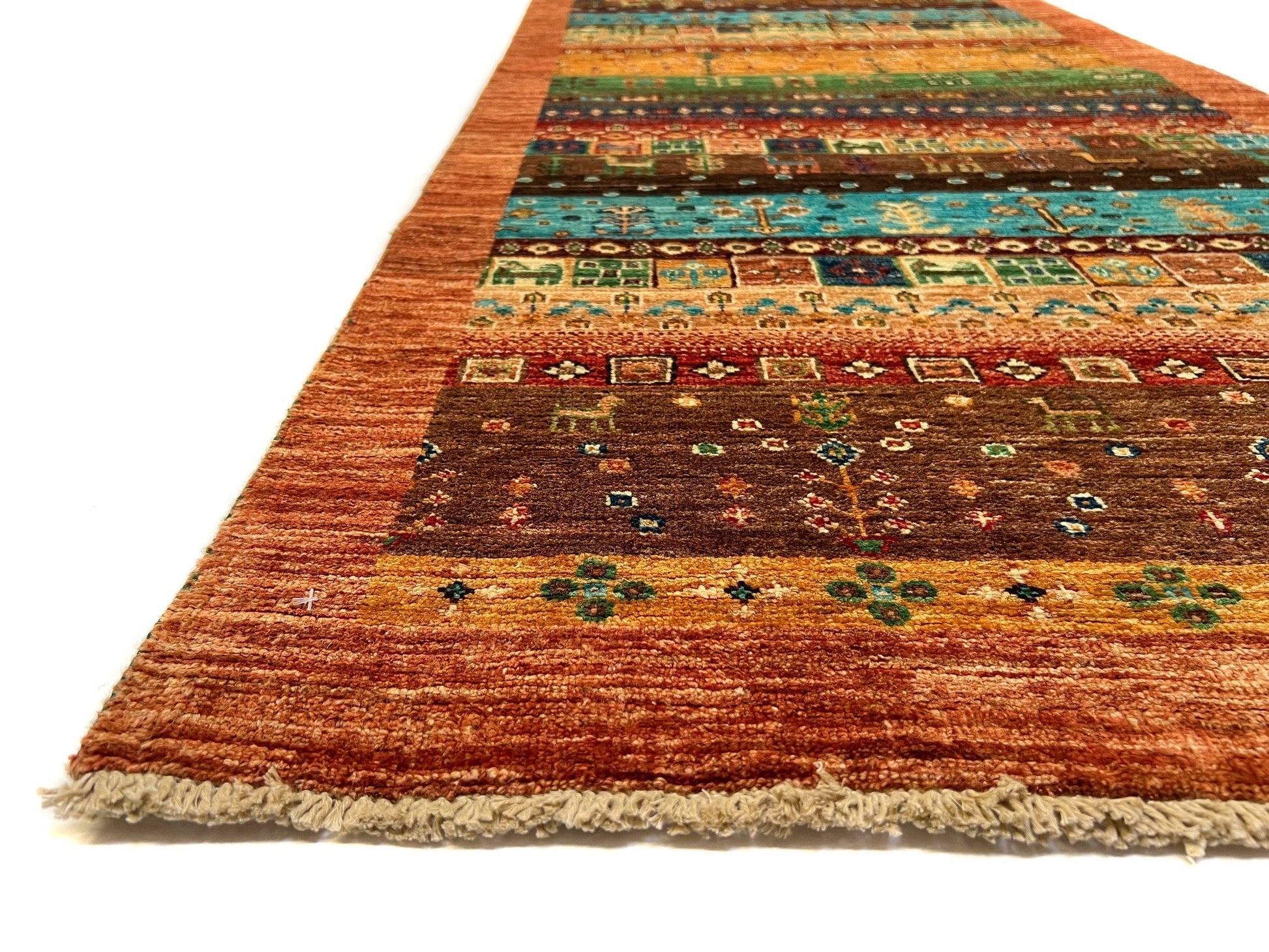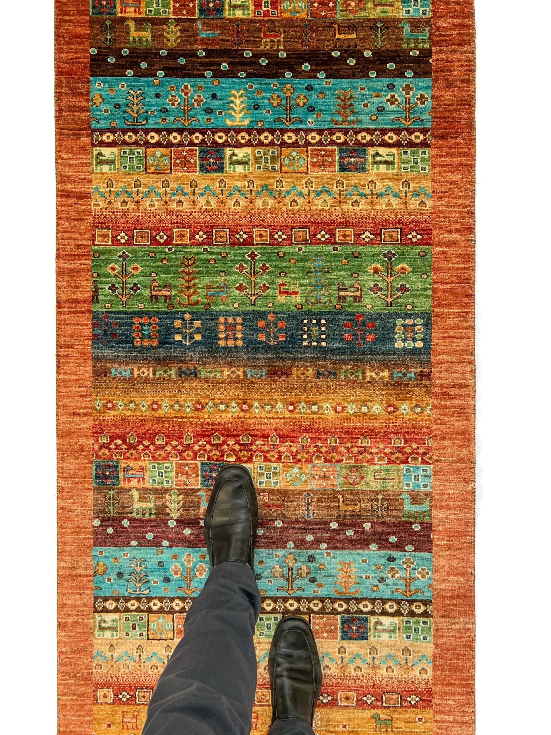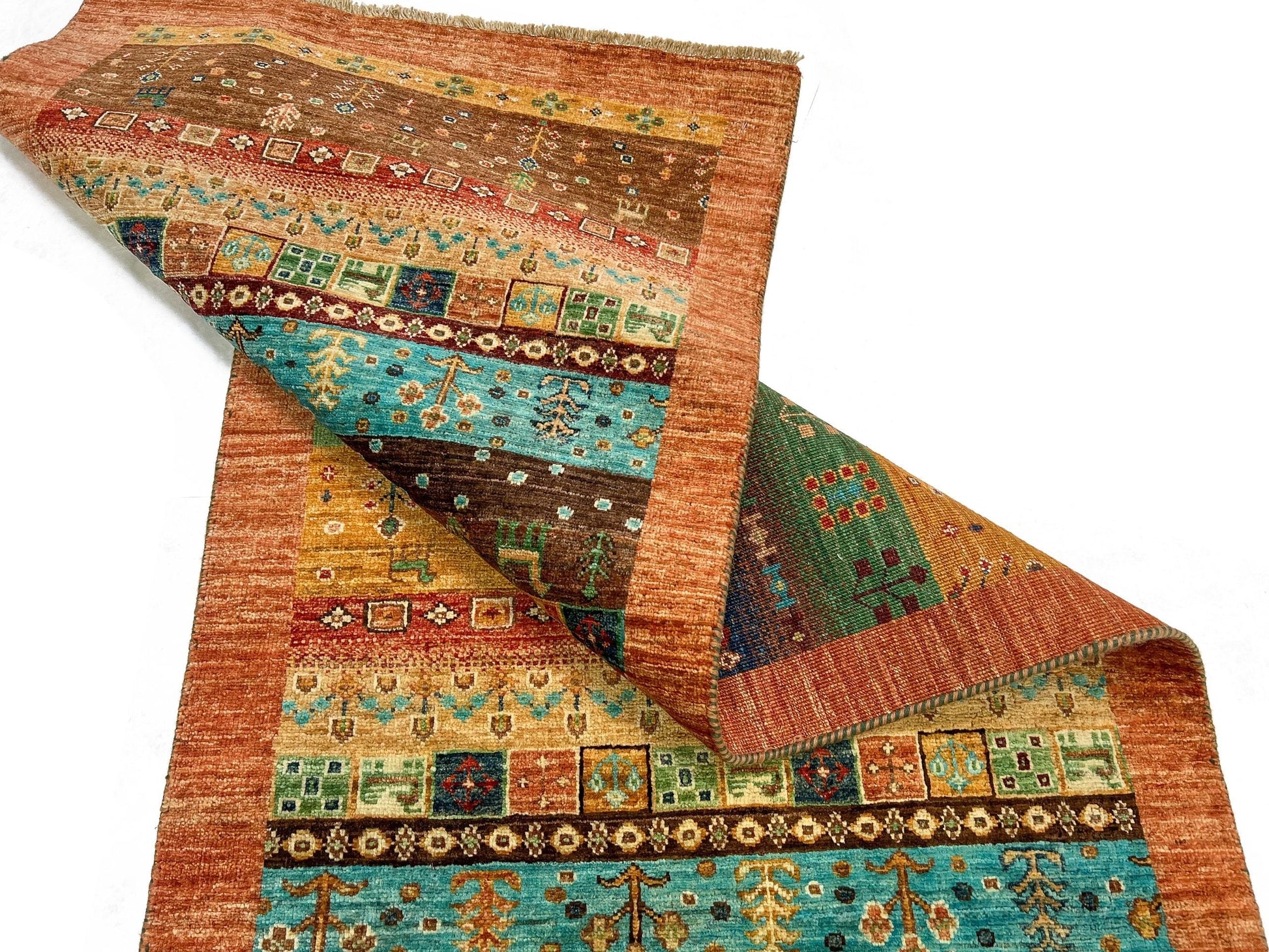Gabbeh design – hand-knotted of hand-spun, vegetable-dyed Ghazni wool in Afghanistan