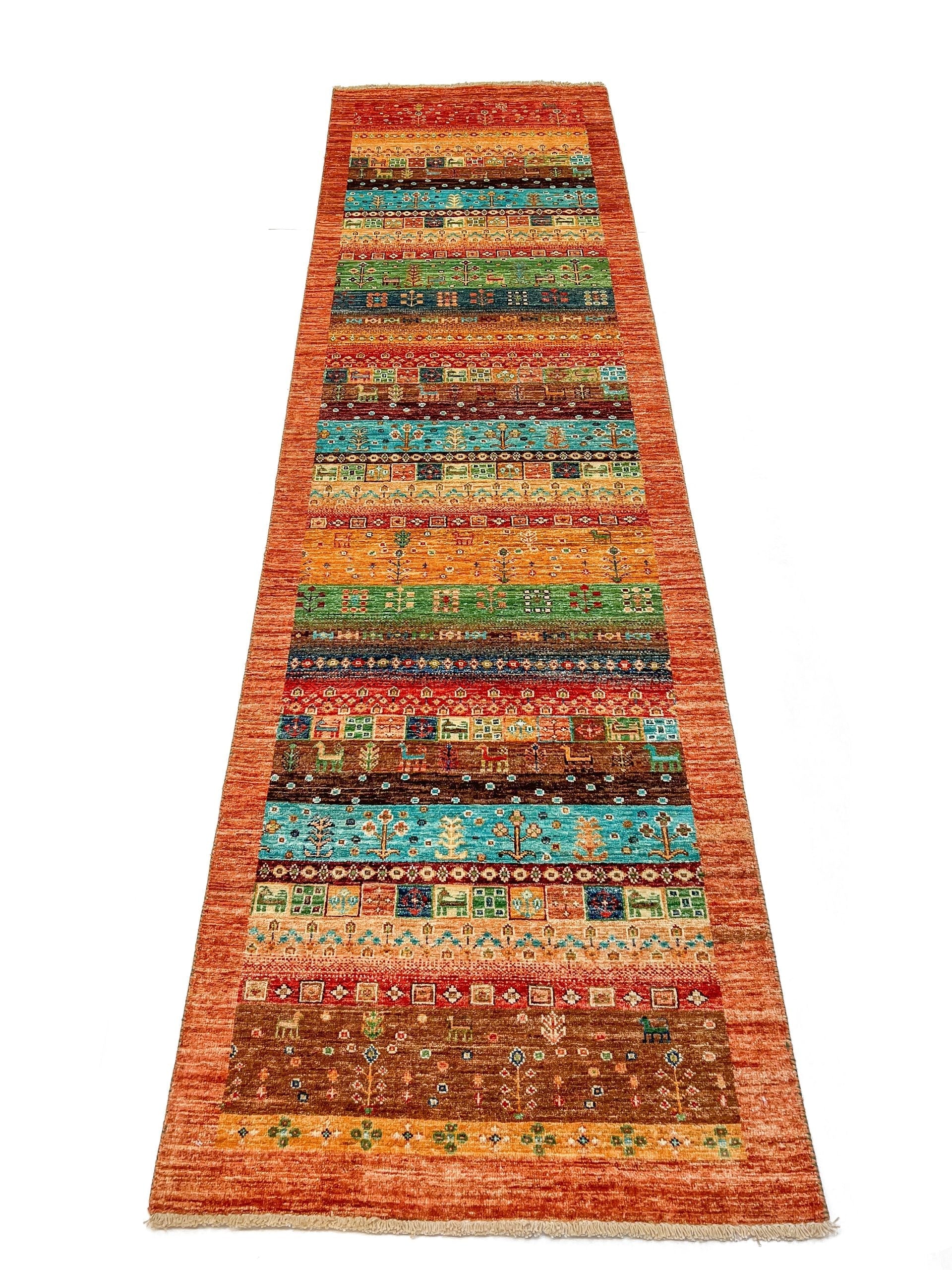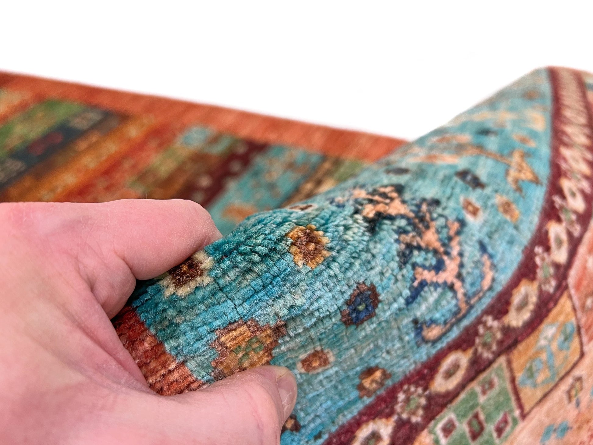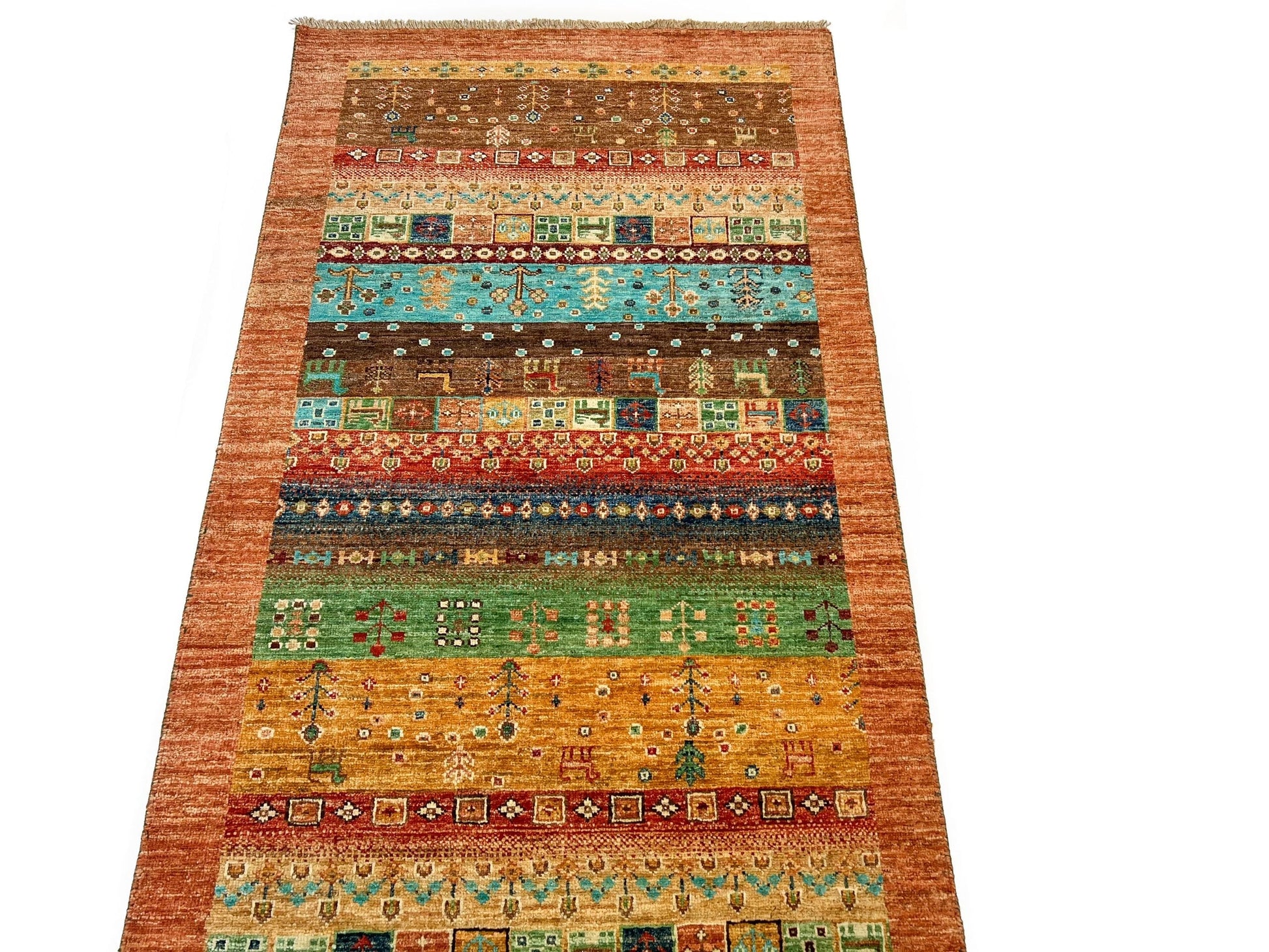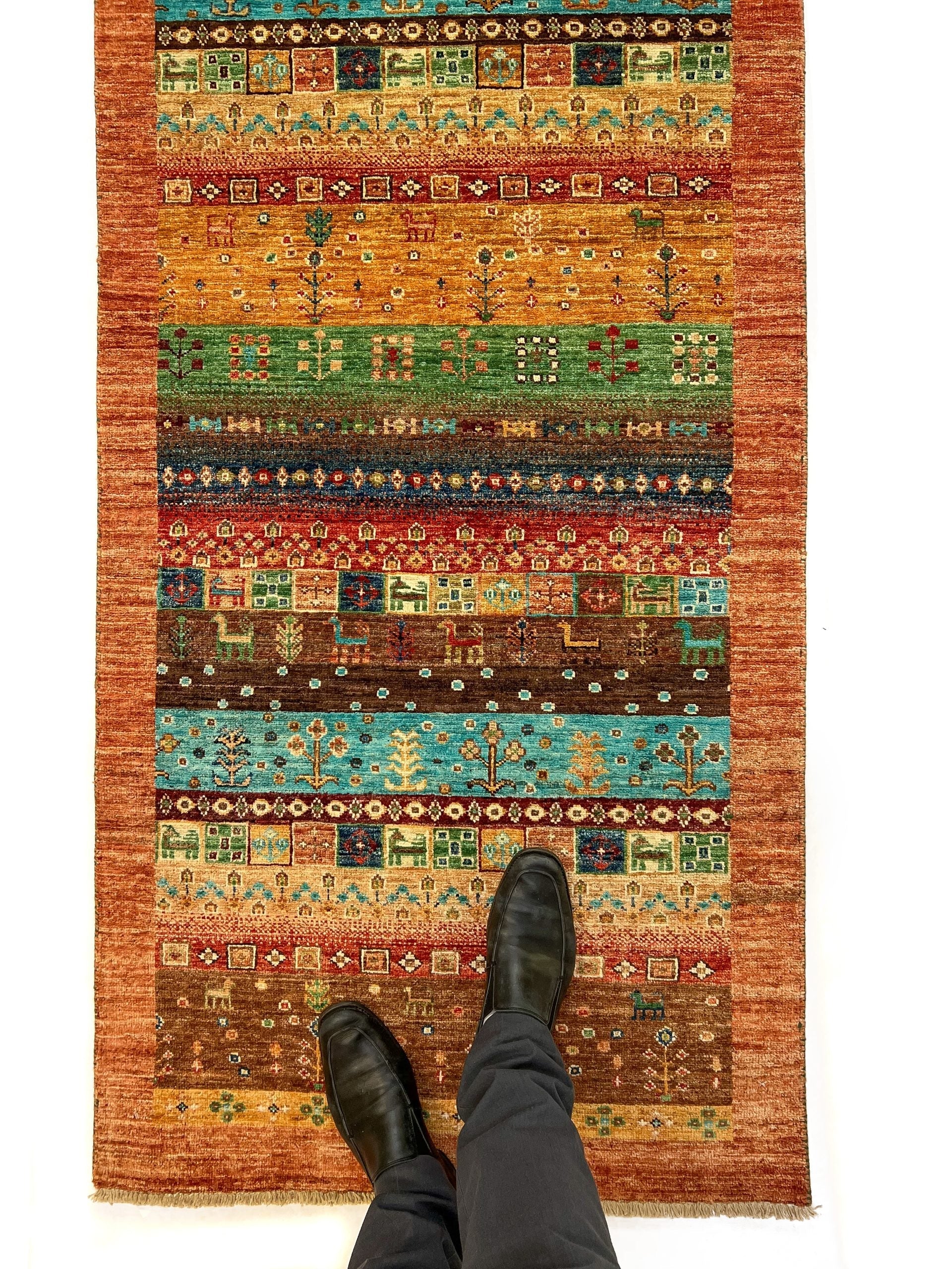 Gabbeh design – hand-knotted of hand-spun, vegetable-dyed Ghazni wool in Afghanistan