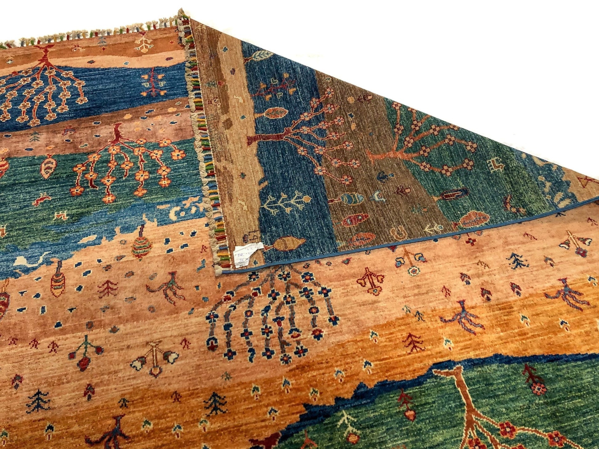Hand-knotted of hand-spun, vegetable-dyed Ghazni wool in Afghanistan – finished and exported from Pakistan