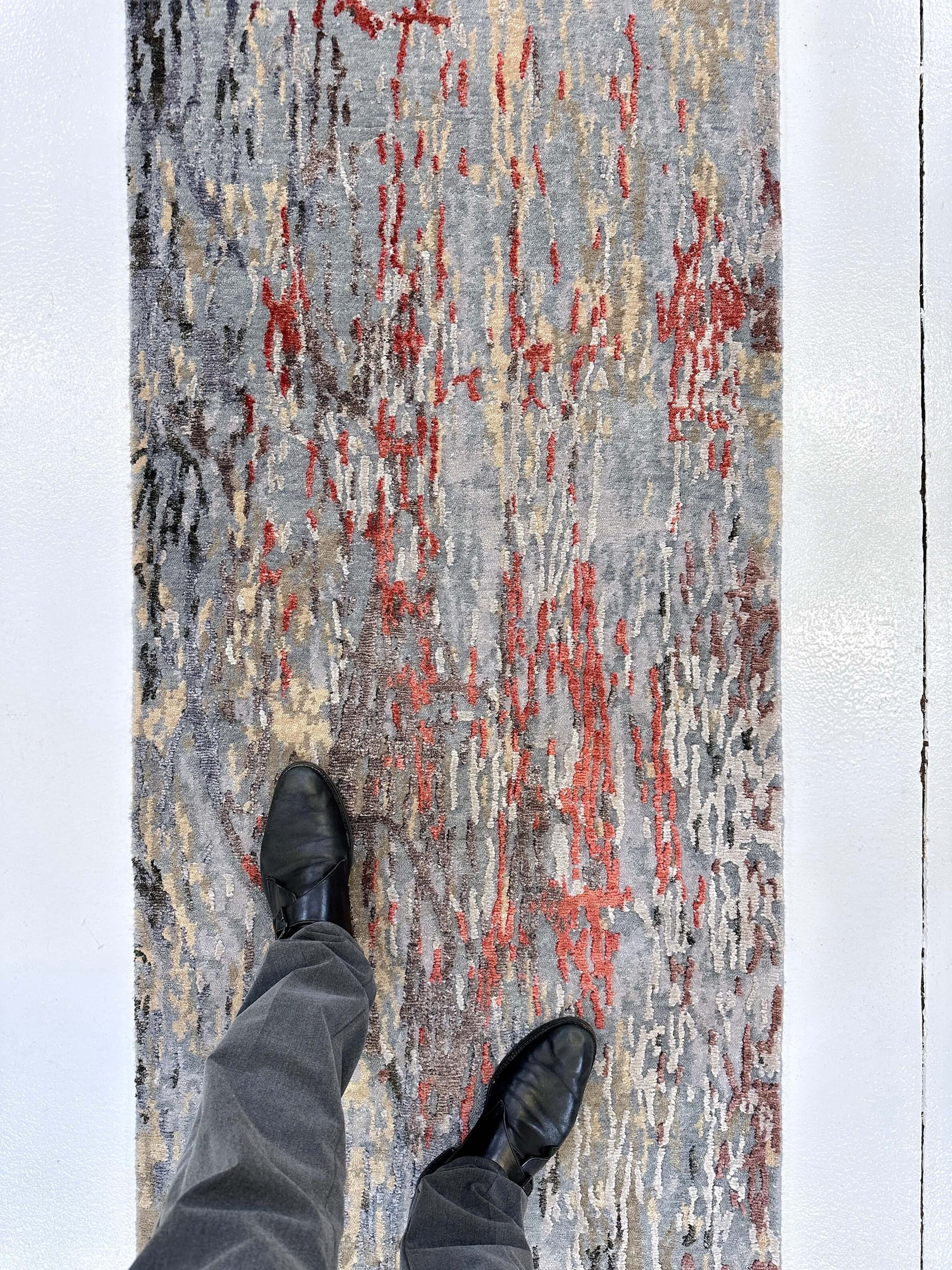 Handcrafted in India using traditional knotting techniques, this runner combines lustrous bamboo silk with premium wool fibers. Each piece is meticulously hand-carved to create dimensional texture and visual depth. The sophisticated gray and crimson palette offers versatile elegance for contemporary interiors, while the natural fiber blend ensures durability and a luxurious feel underfoot.