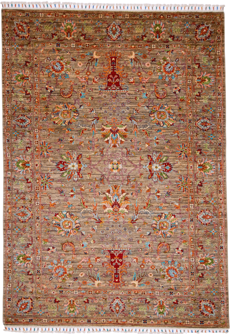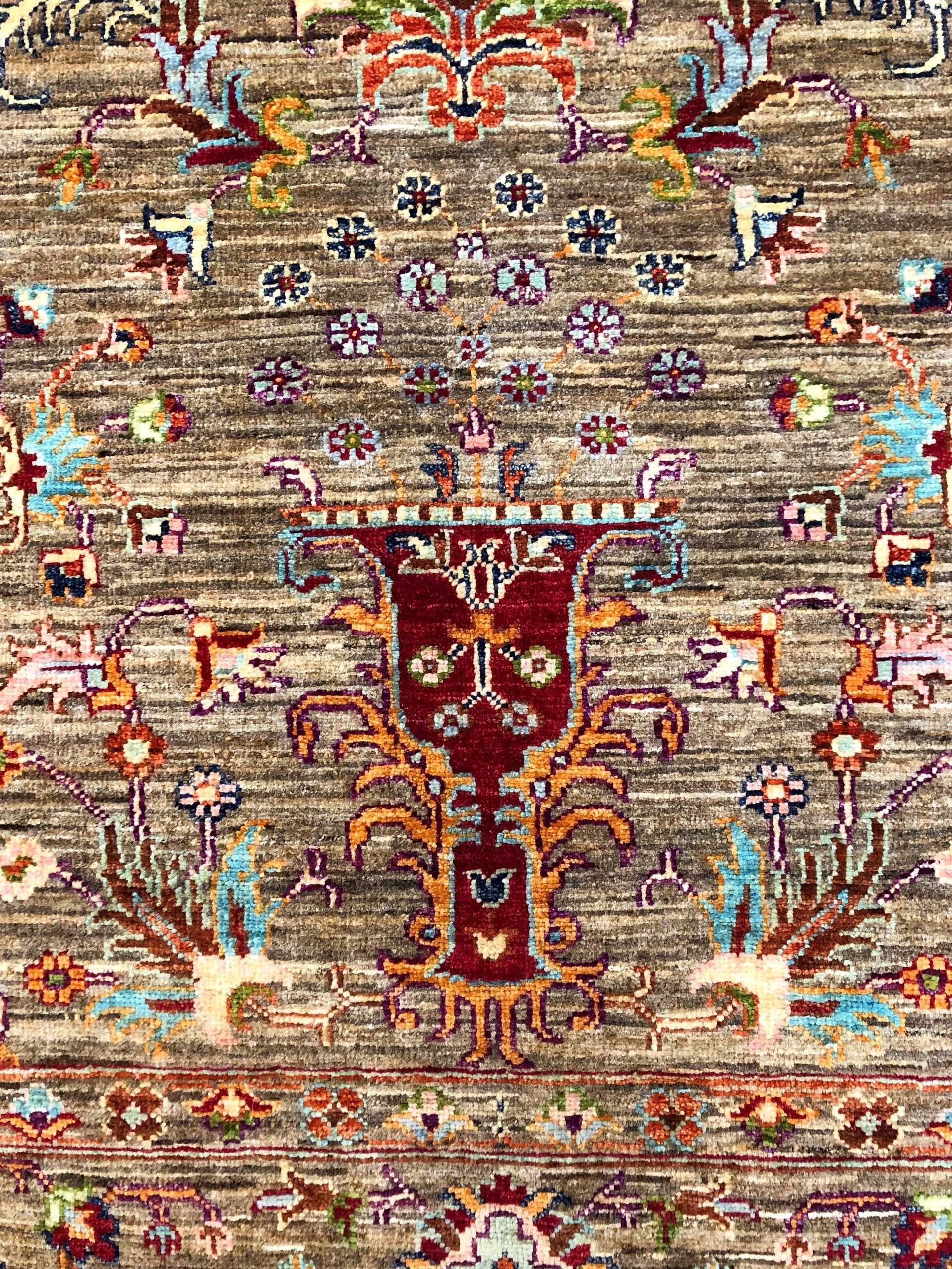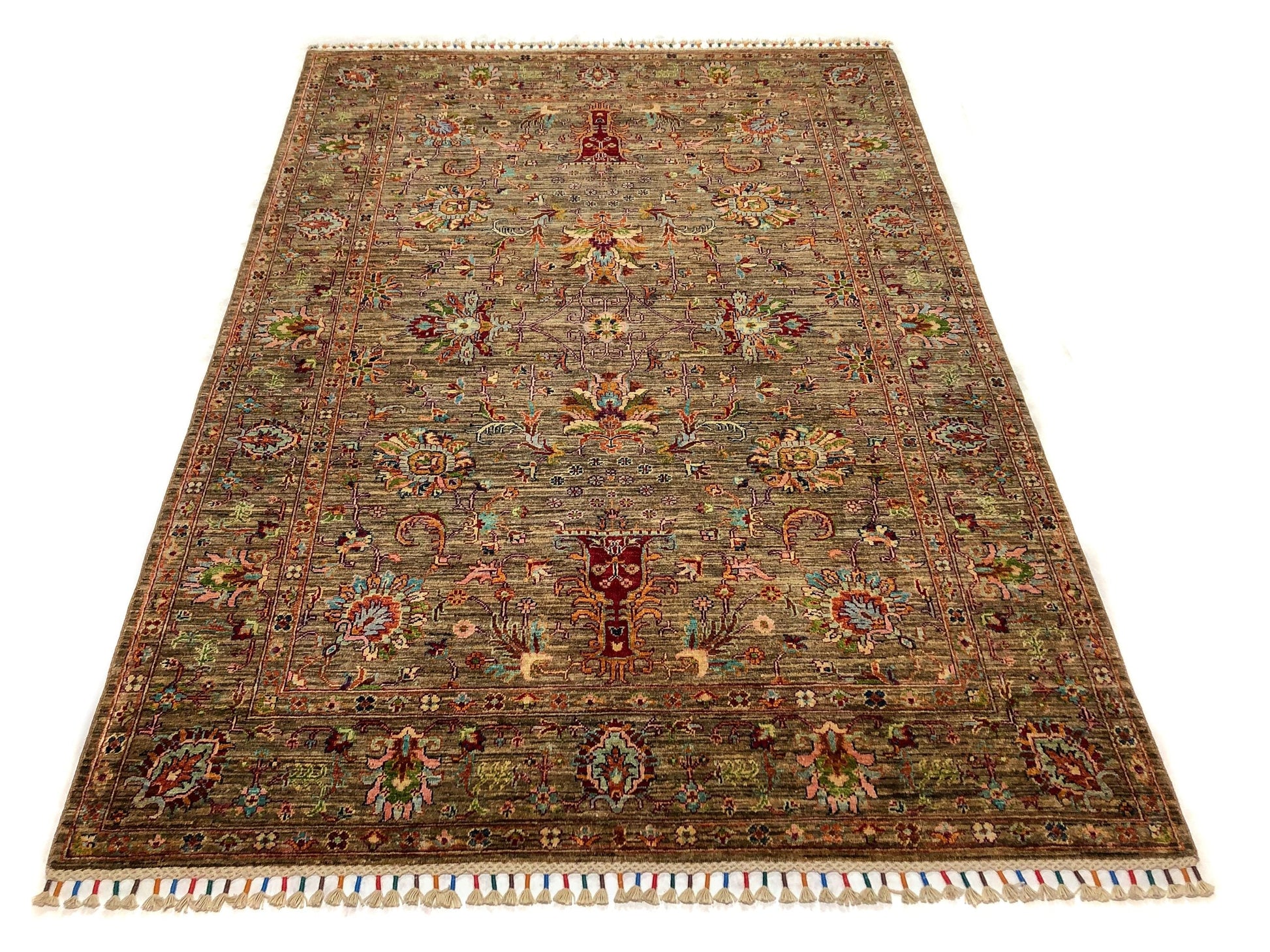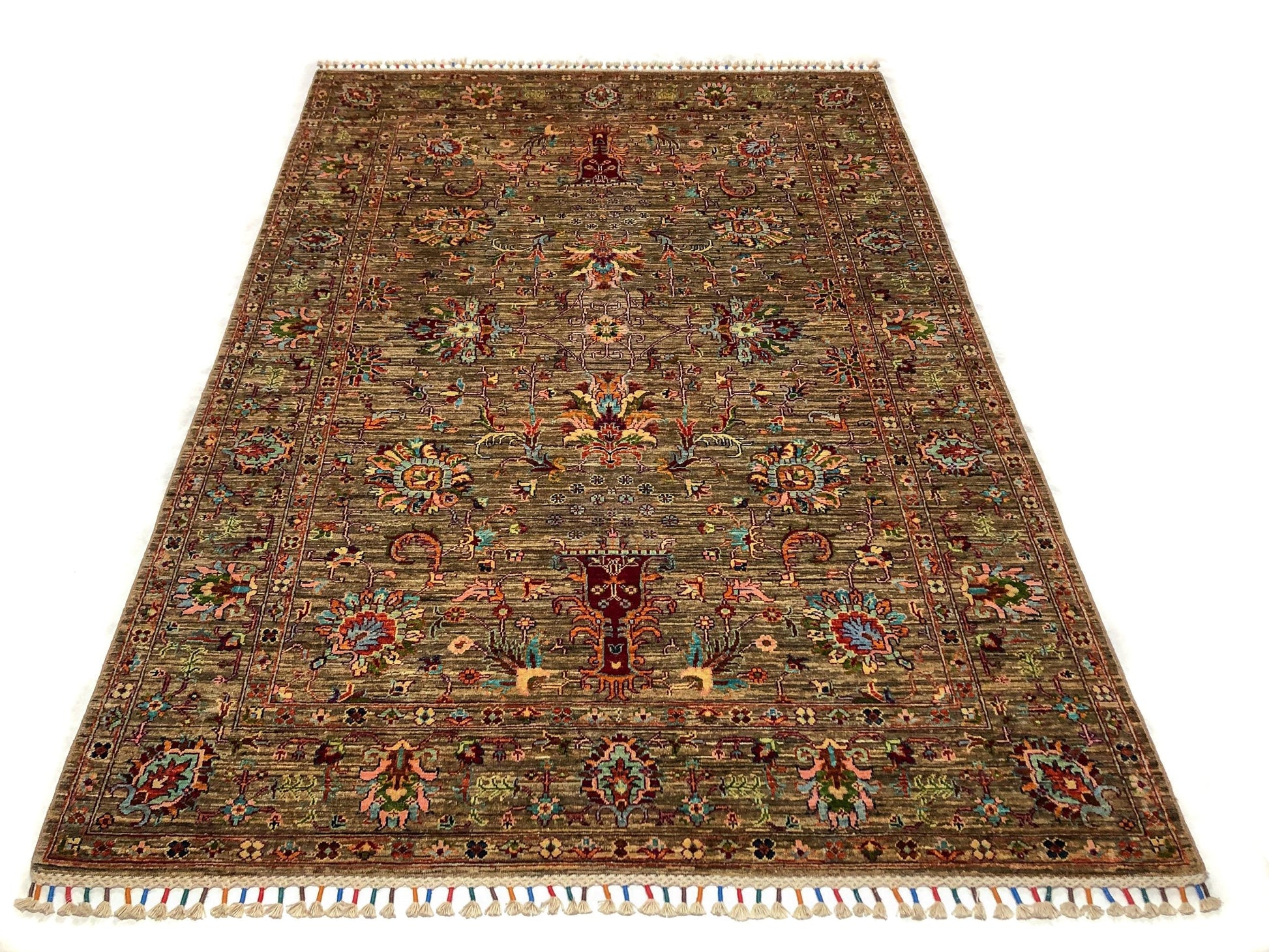 Khorjin (Khurjeen) – design with colorful, tasseled fringes – hand-knotted of hand-spun, vegetable-dyed Ghazni wool in Afghanistan; exported from Pakistan