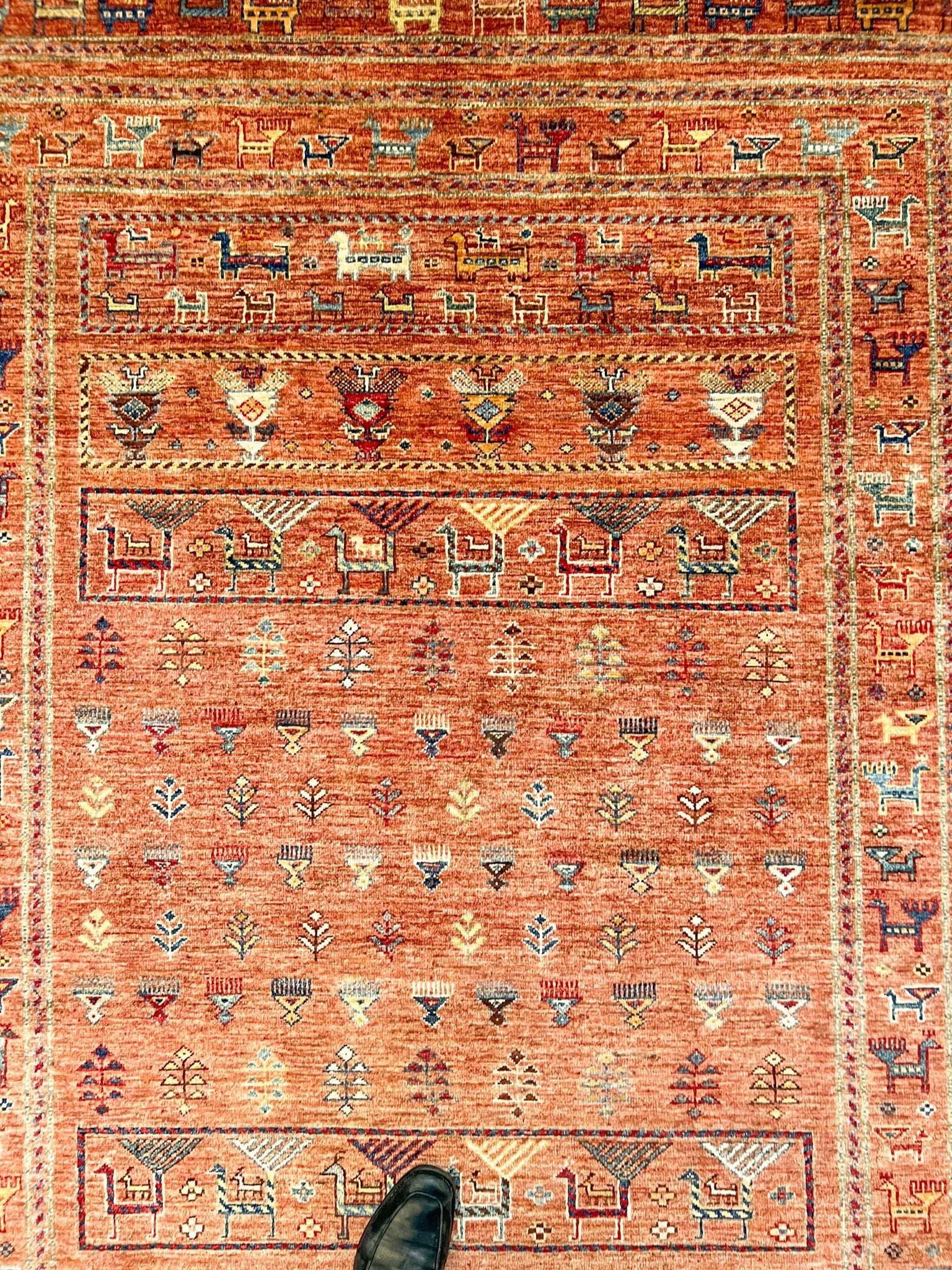 Khorjin (Khurjeen) horizontal nomadic design – hand-knotted of hand-spun, vegetable-dyed Ghazni wool (Afghanistan)