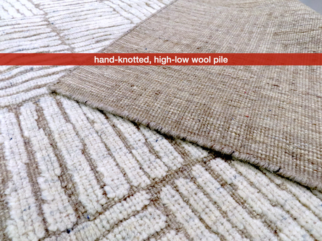 High/low textured Moroccan design – Multi-texture comes from a combination of hand knotted pile and hand-woven flat weave