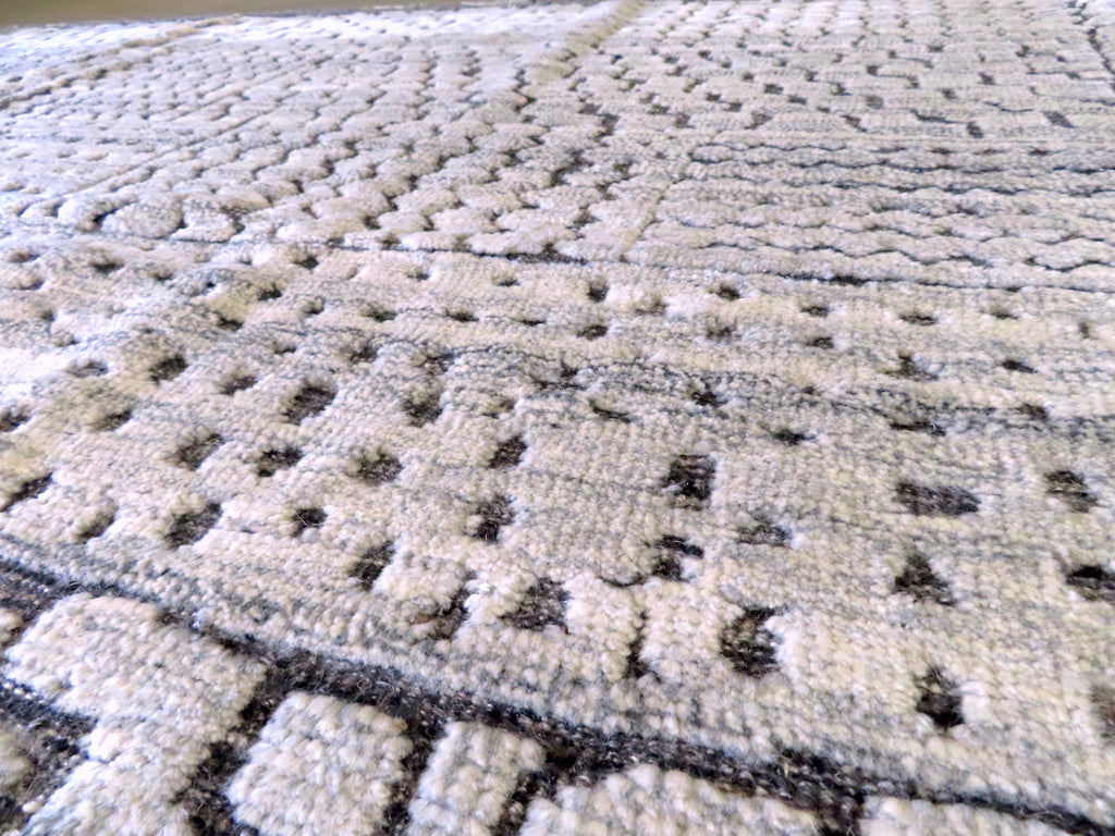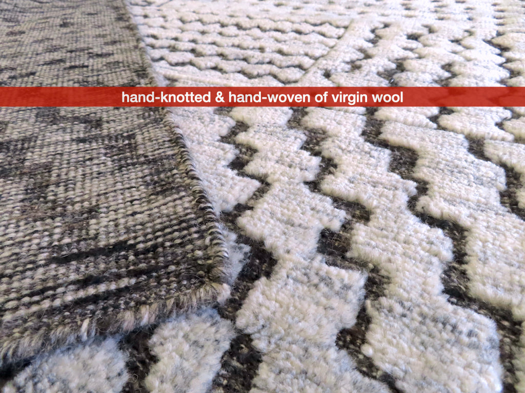High/low textured north African/Moroccan design – Multi-texture comes from a combination of hand knotted pile and hand-woven flat weave