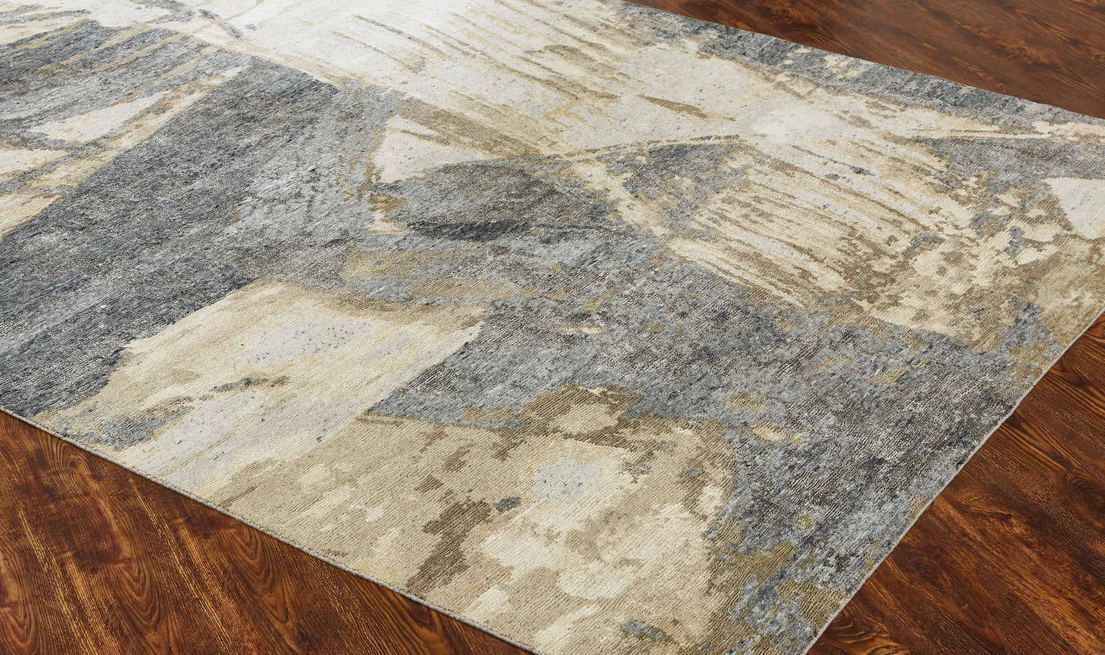 Chic on-trend modern designs and colors comprise this exceptional collection of contemporary abstract artistic expressions. Each of these extraordinary rugs is meticulously hand knotted in a Tibetan weave using a combination of premium wool and Silkette™ yarns and then finished with intricate hand carving for special high-low textural interest.