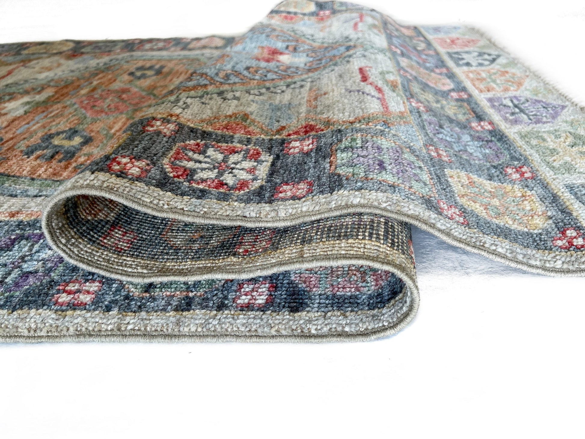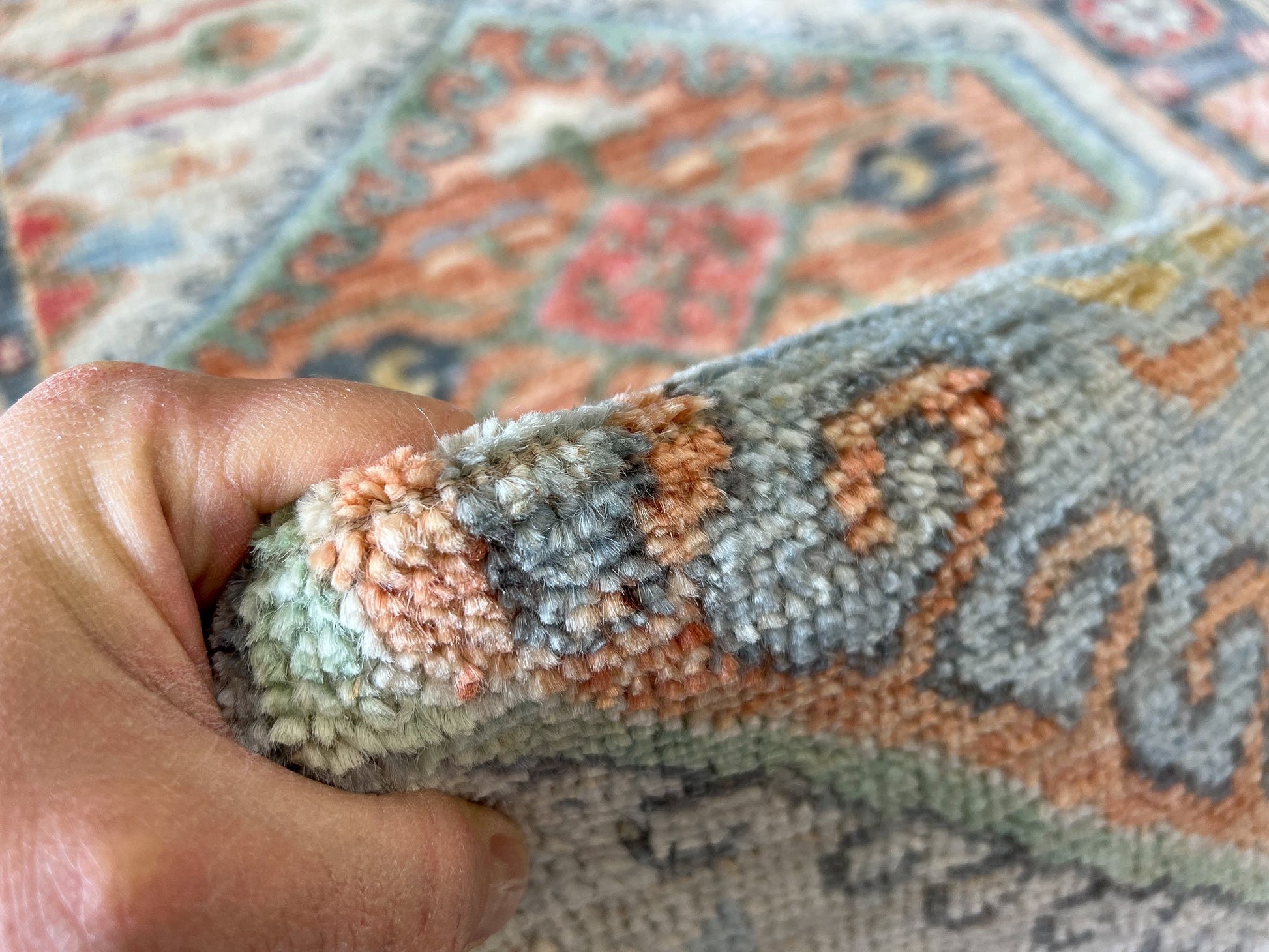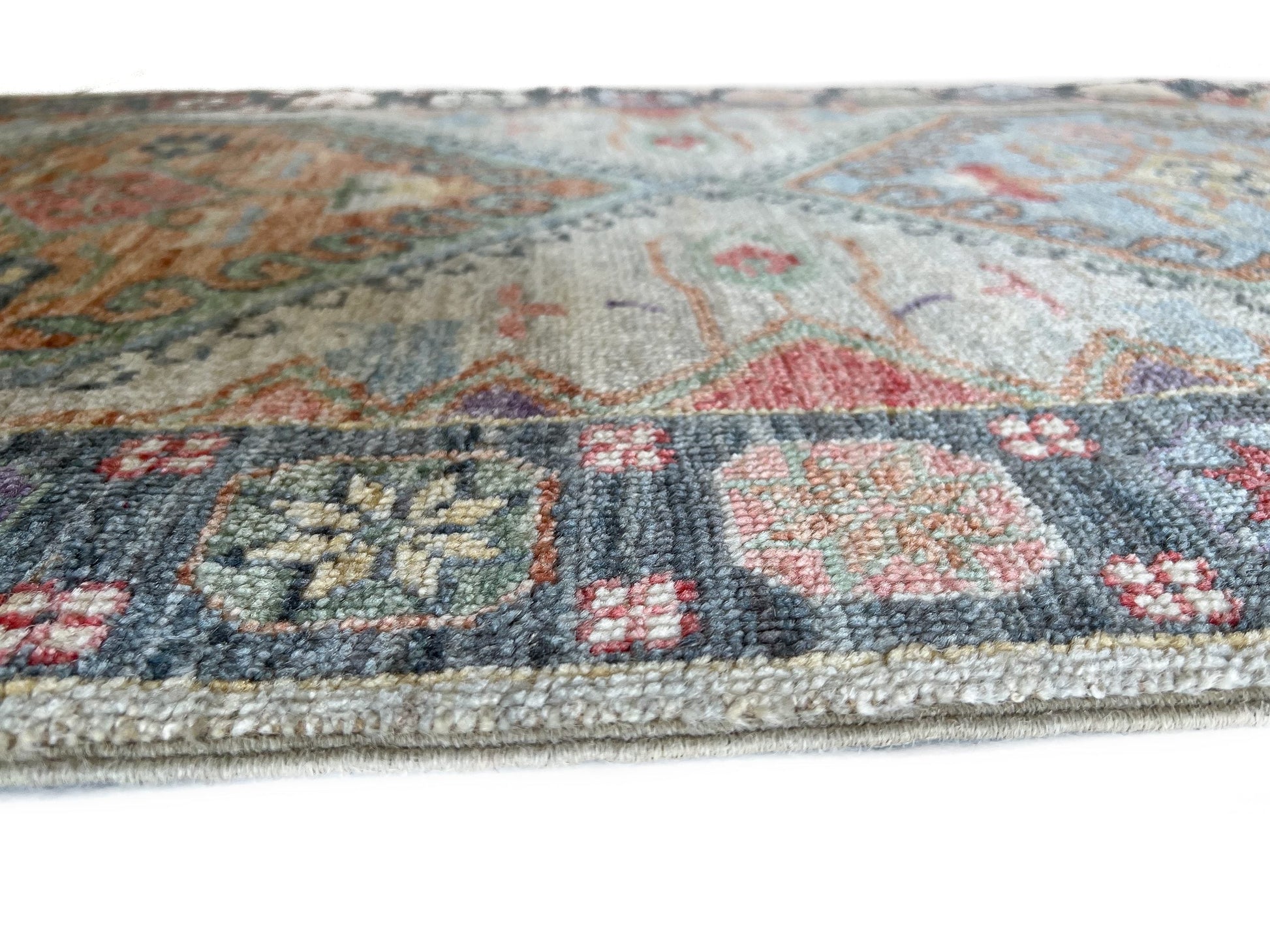 Antique Turkish Oushak-inspired design, new Afghan-made weaving – hand-knotted of hand-spun, vegetable-dyed wool, exported from Pakistan
