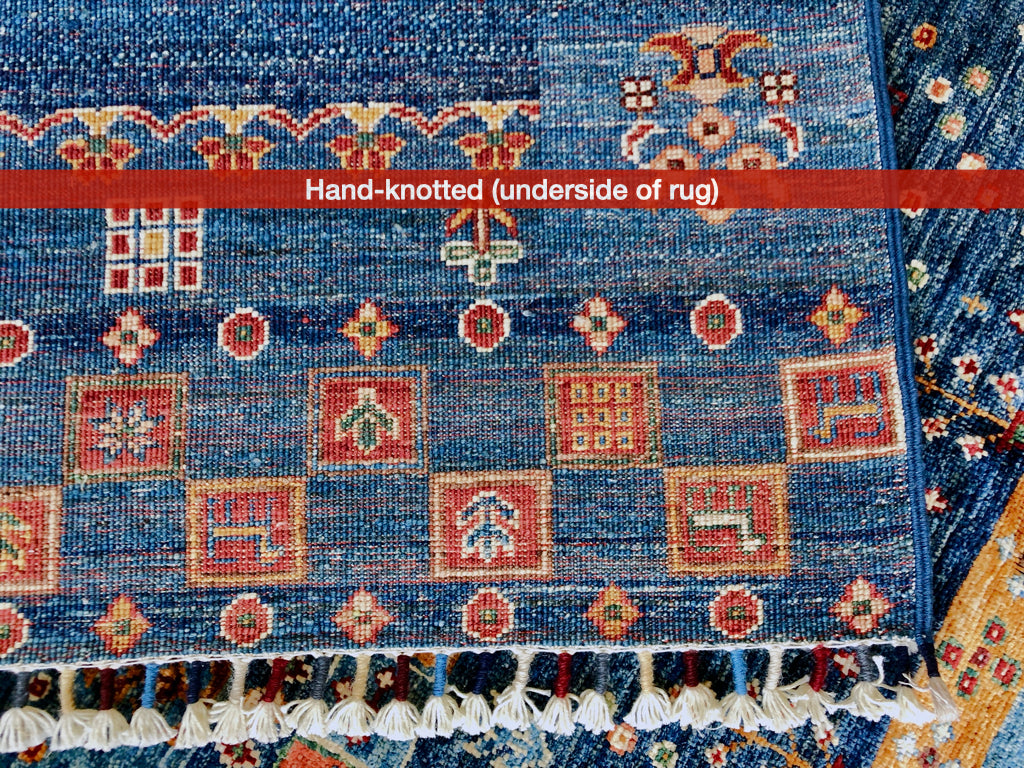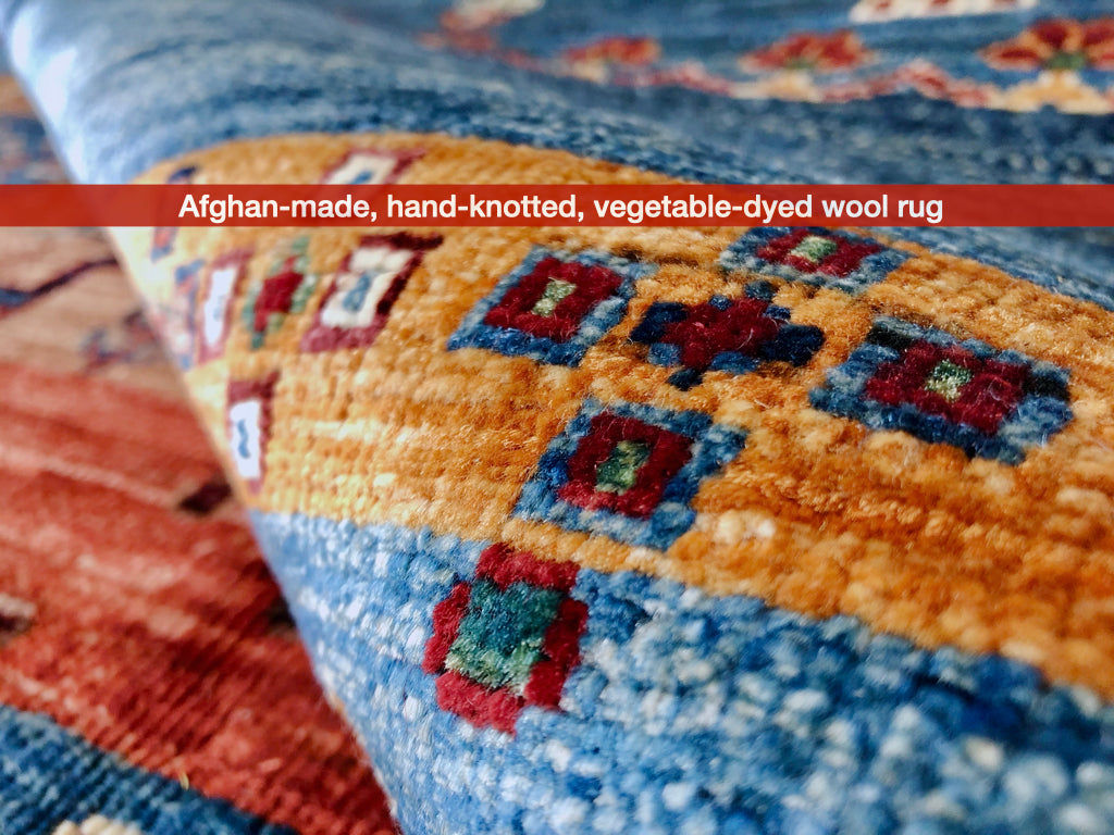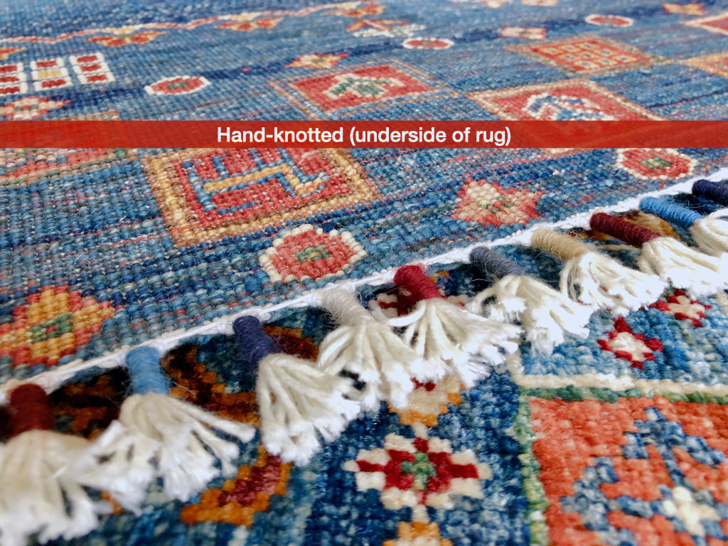 Pazyryk-influenced Gabbeh design with colorful tasseled fringe – hand-knotted of hand-spun, vegetable-dyed Ghazni wool (Afghanistan)