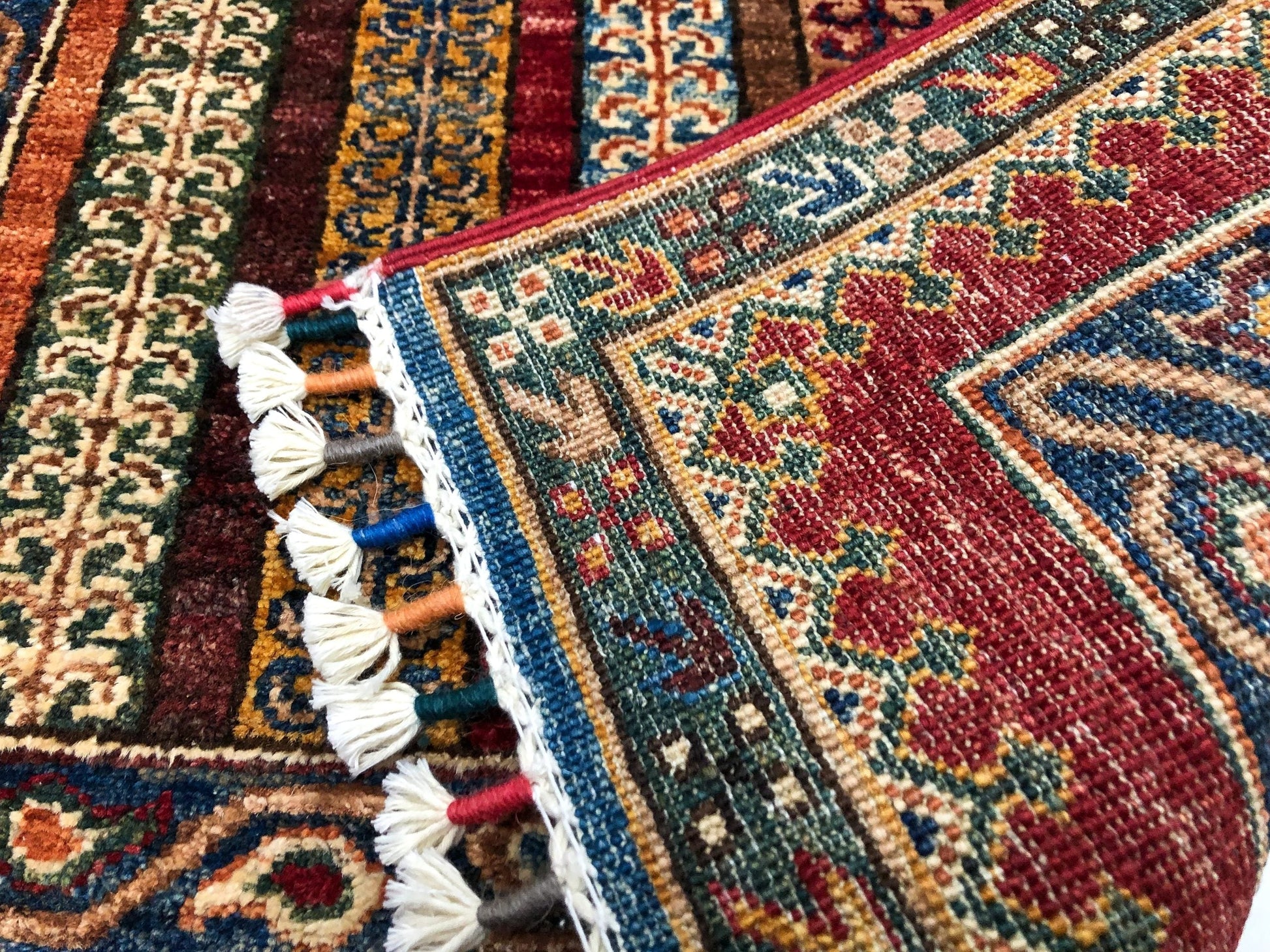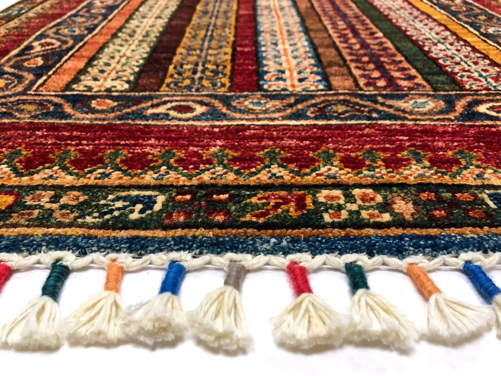 Turkish Shawl design with decorative fringe – hand-knotted of hand-spun, vegetable-dyed Ghazni wool in Afghanistan; exported from Pakistan