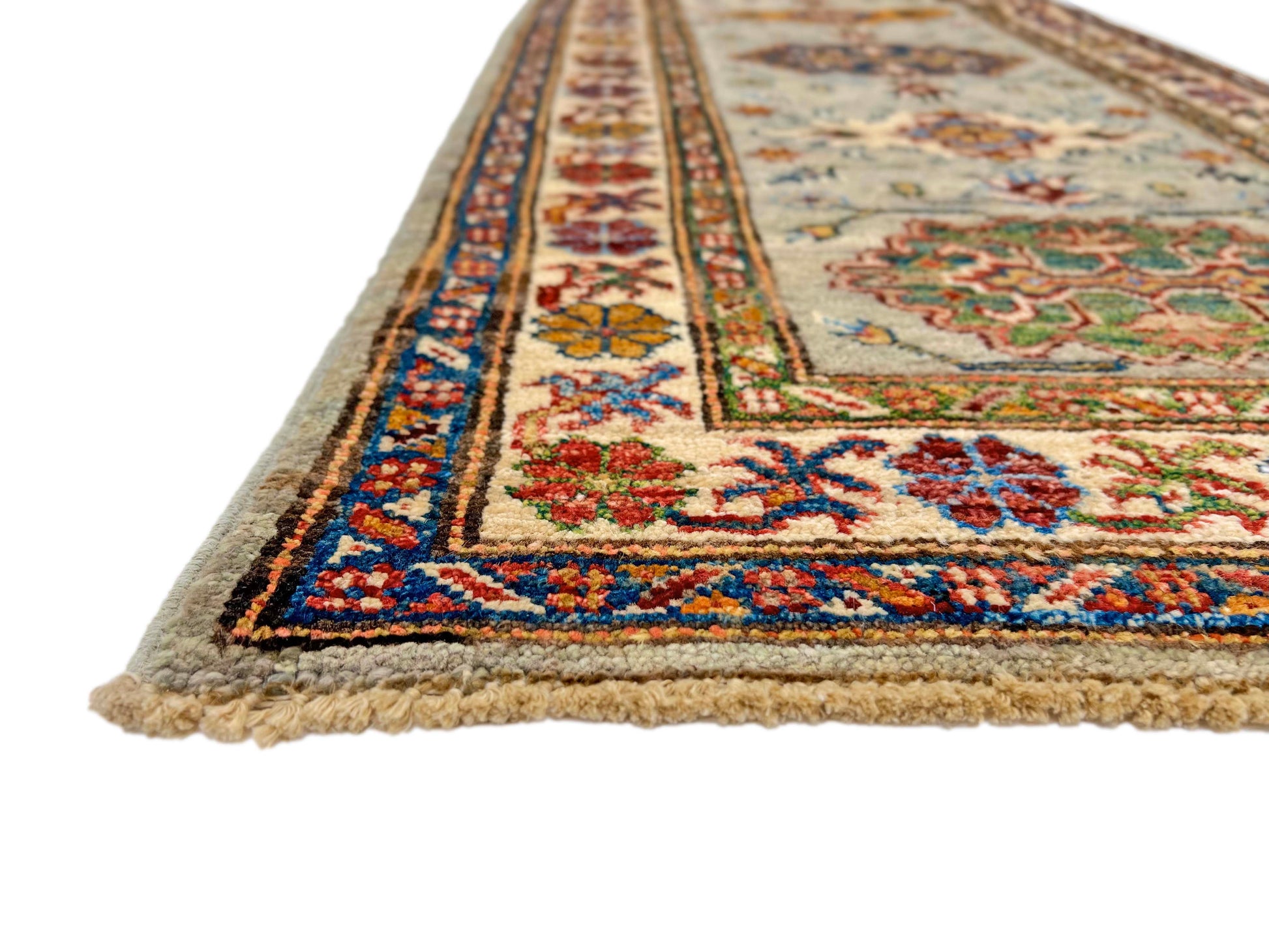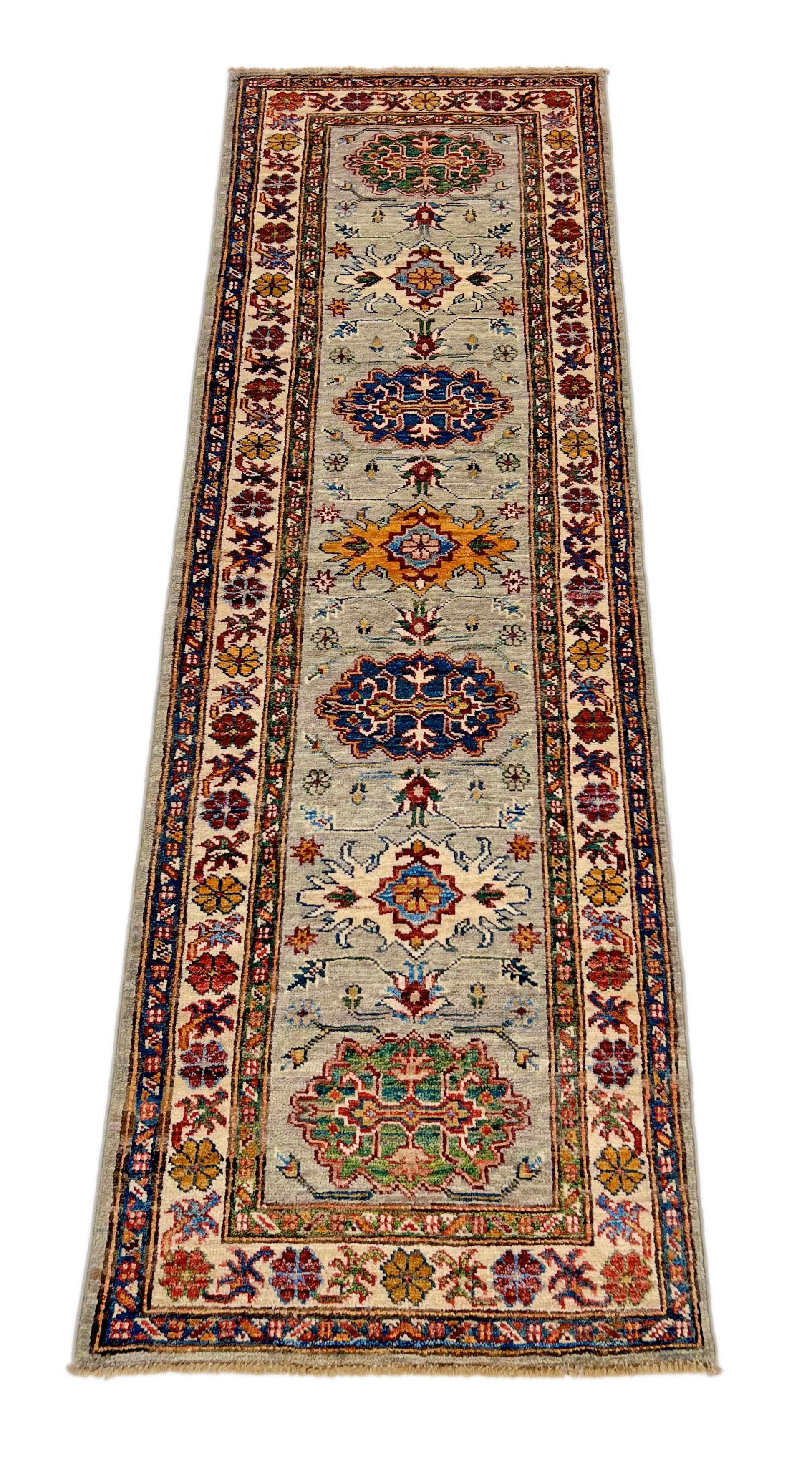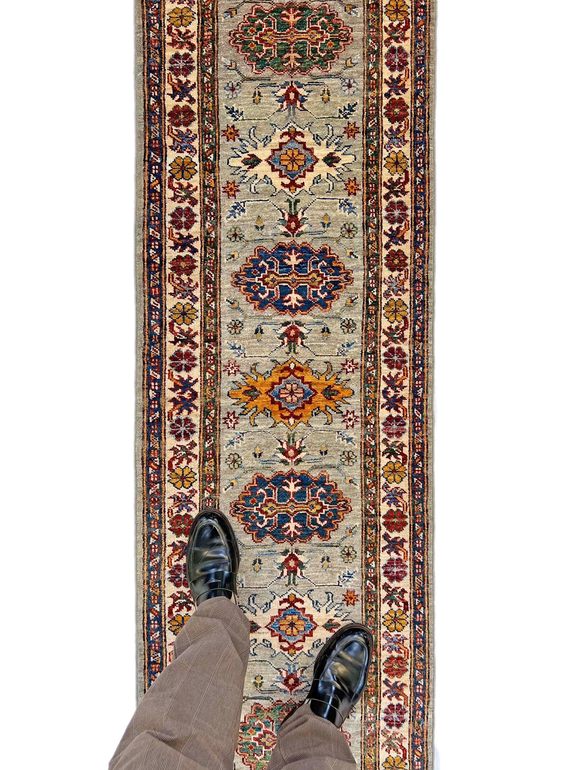 Super Kazak (2'00"x6'00") light gray/multicolor