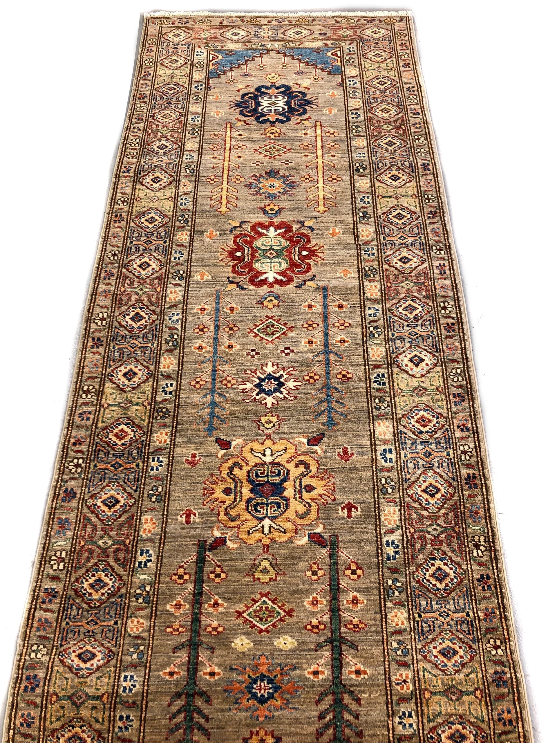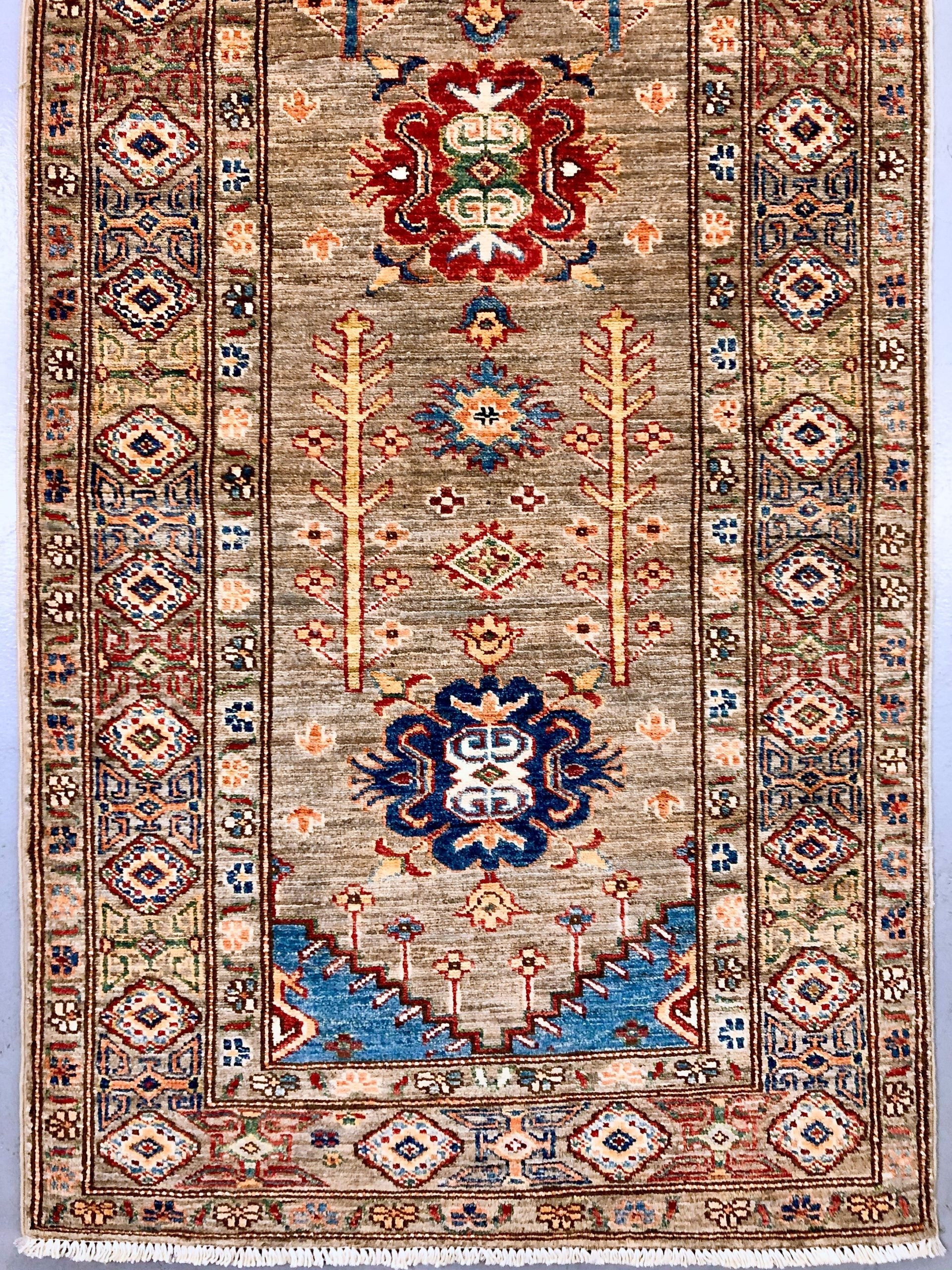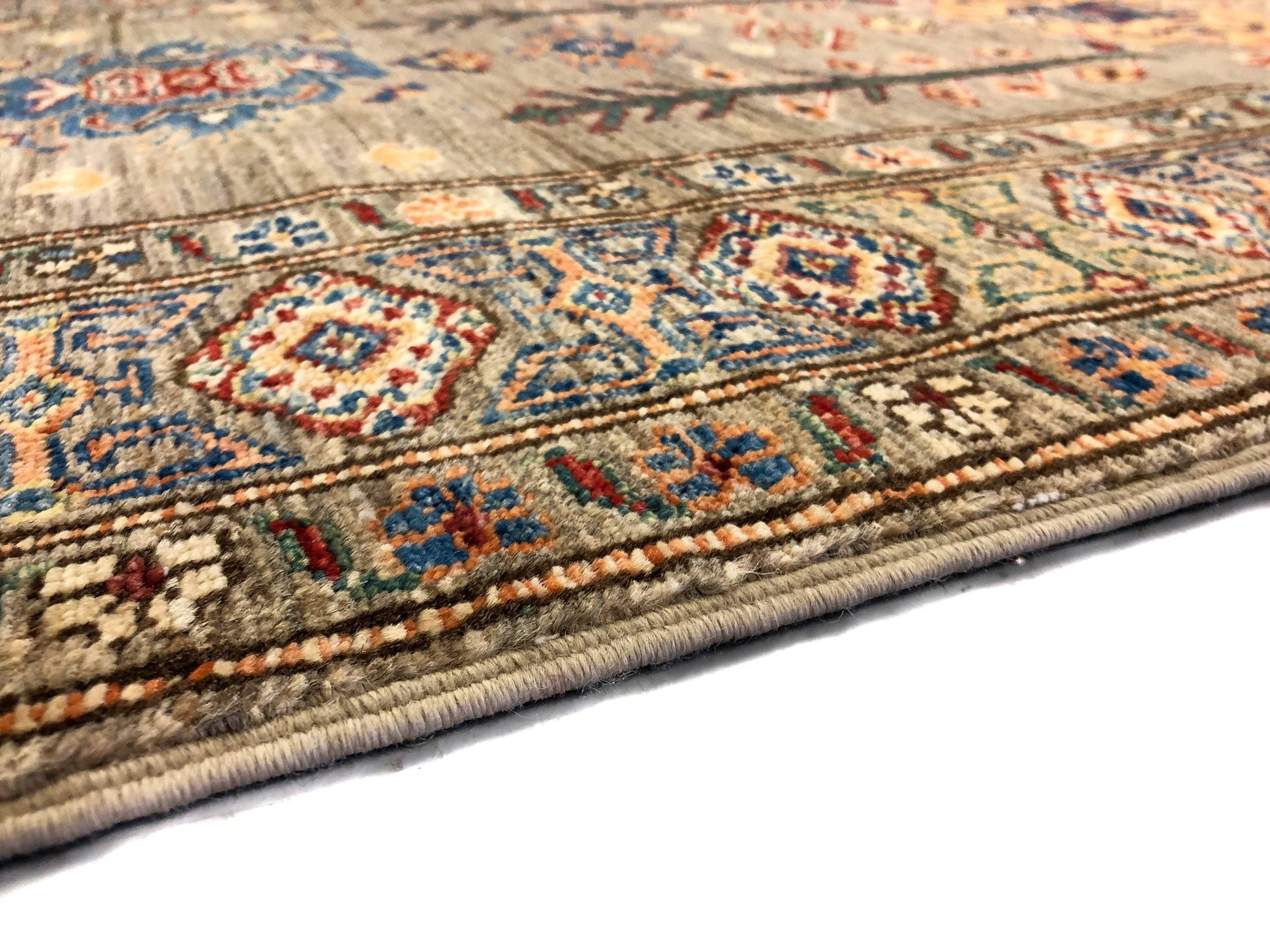 Kazak design in updated colors – hand-knotted of hand-spun, vegetable-dyed Ghazni wool in Afghanistan; exported from Pakistan