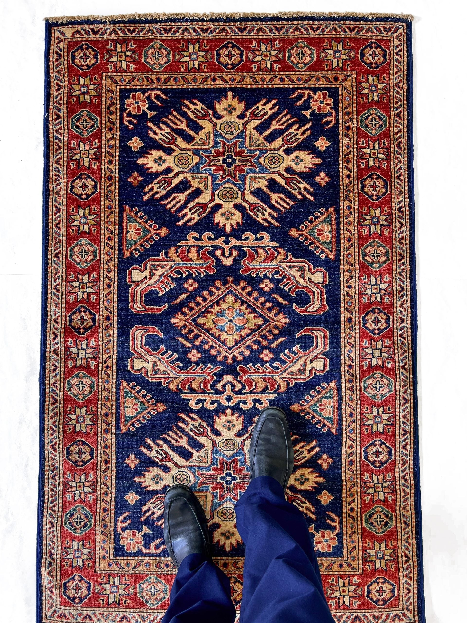 Super Kazak – hand-knotted of hand-spun, vegetable-dyed Ghazni wool from Afghanistan – exported from Pakistan