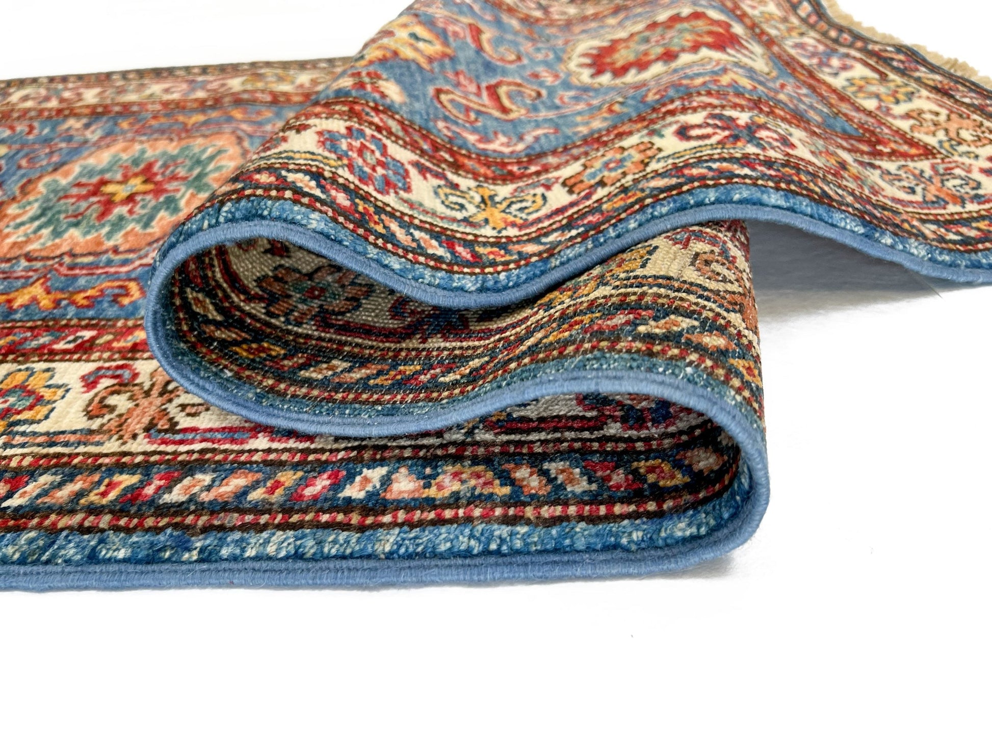 Super Kazak short runner – hand-knotted of hand-spun, vegetable-dyed Ghazni wool; Afghanistan-made; exported from Pakistan