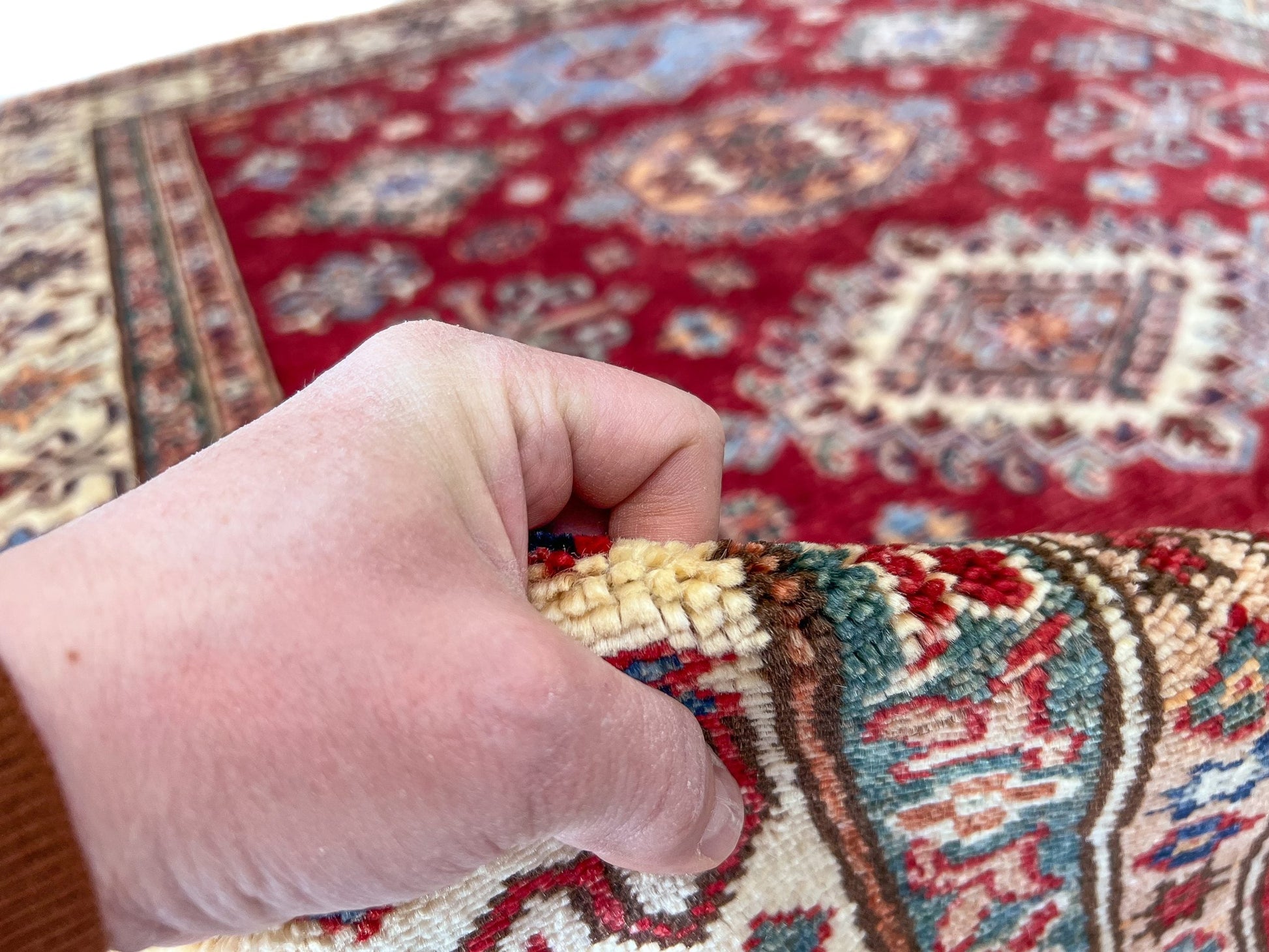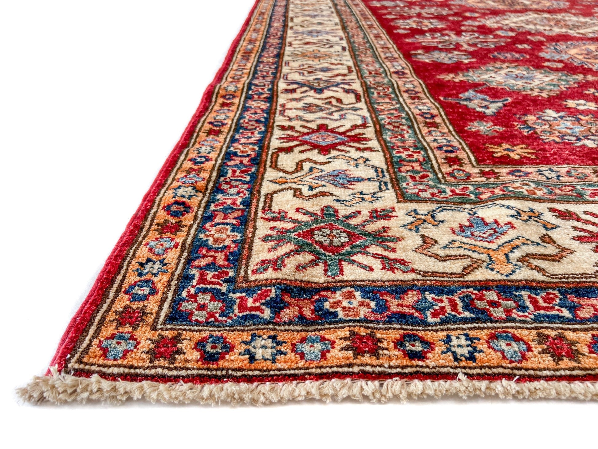 Super Kazak – hand-knotted of hand-spun, vegetable-dyed Ghazni wool; Afghanistan-made; exported from Pakistan